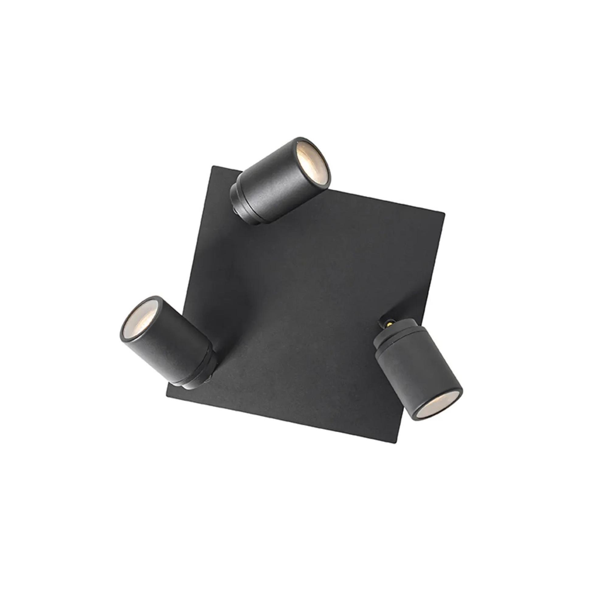 Avec trois points lumineux dans un seul luminaire, vous créez facilement un éclairage homogène dans la salle de bains. Les spots sont orientables individuellement, ce qui vous permet de diriger la lumière : par exemple un spot vers le miroir, un autre vers la zone de douche et un troisième plus général dans la pièce. Le format carré de 23 x 23 cm paraît compact, mais offre un rendement lumineux étonnamment élevé, surtout si vous optez pour des sources lumineuses LED GU10 puissantes. La couleur noir mat s’harmonise parfaitement avec les tendances actuelles de salles de bains avec robinets, profilés de douche et accessoires noirs, ce qui vous permet de créer facilement un ensemble cohérent.