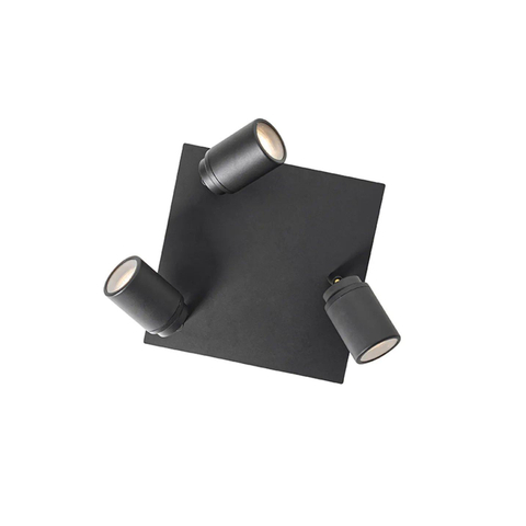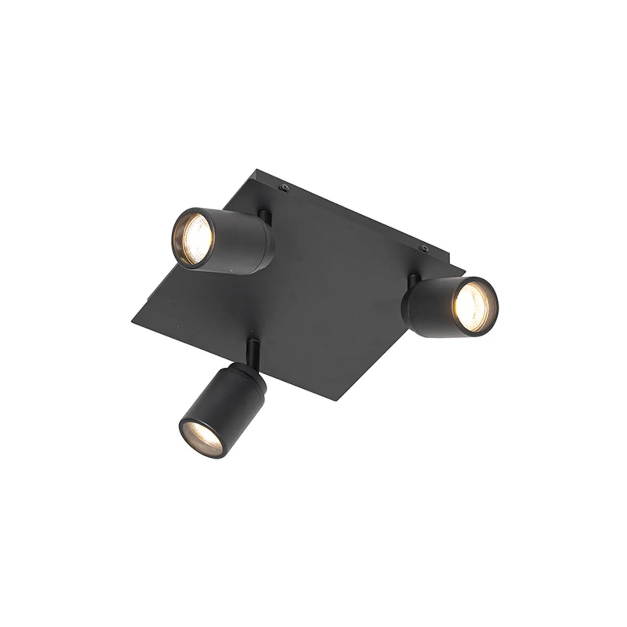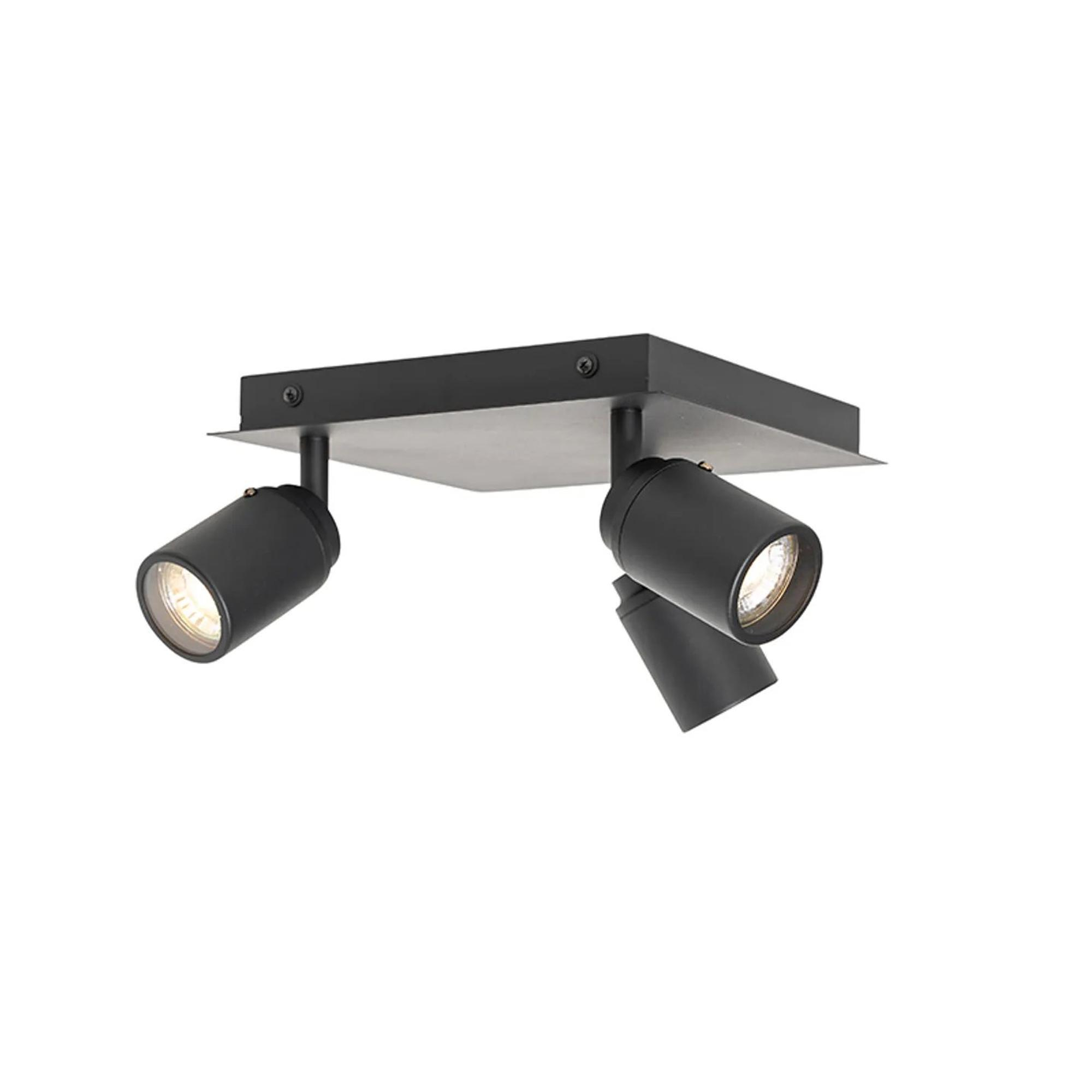 QAZQA Ducha plafonnier de salle de bains - 23x23cm - 3 spots - IP44 - carré - noir mat
