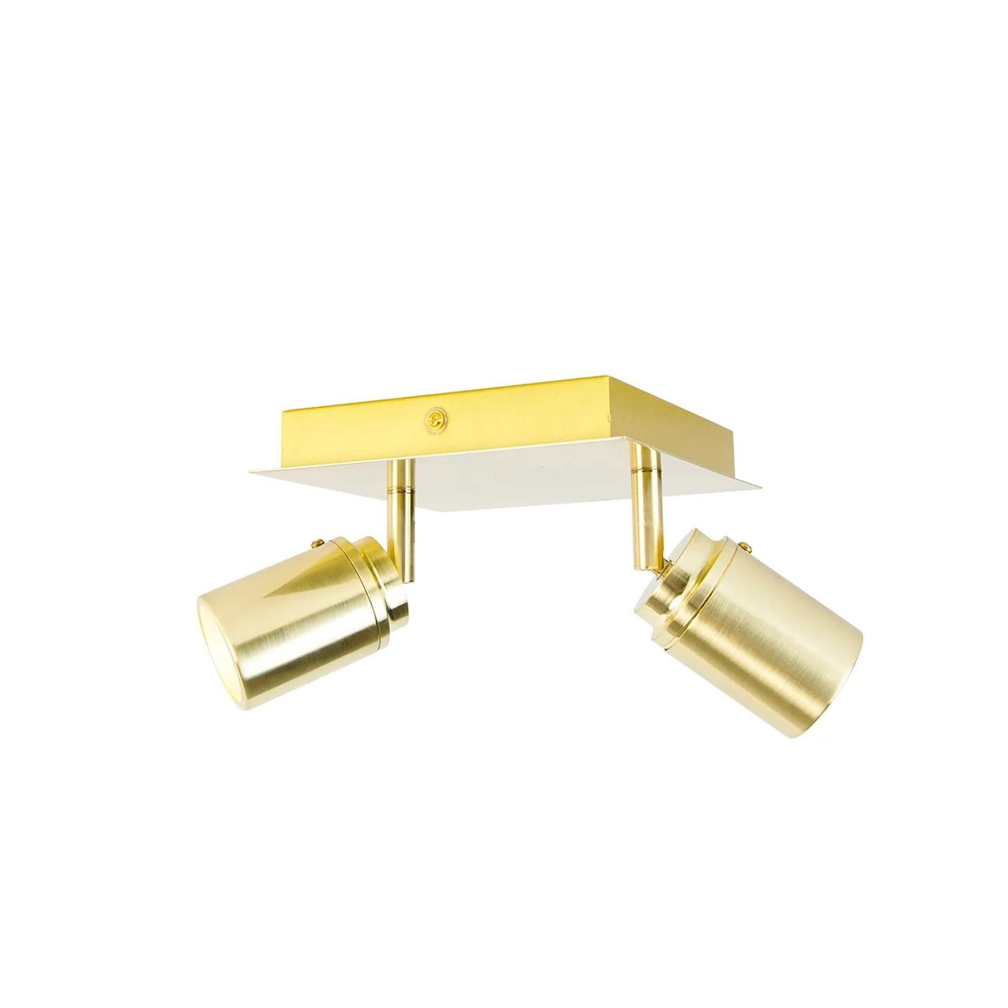 QAZQA Ducha plafonnier de salle de bains - 17x17cm - 2 spots - IP44 - carré - laiton (or)