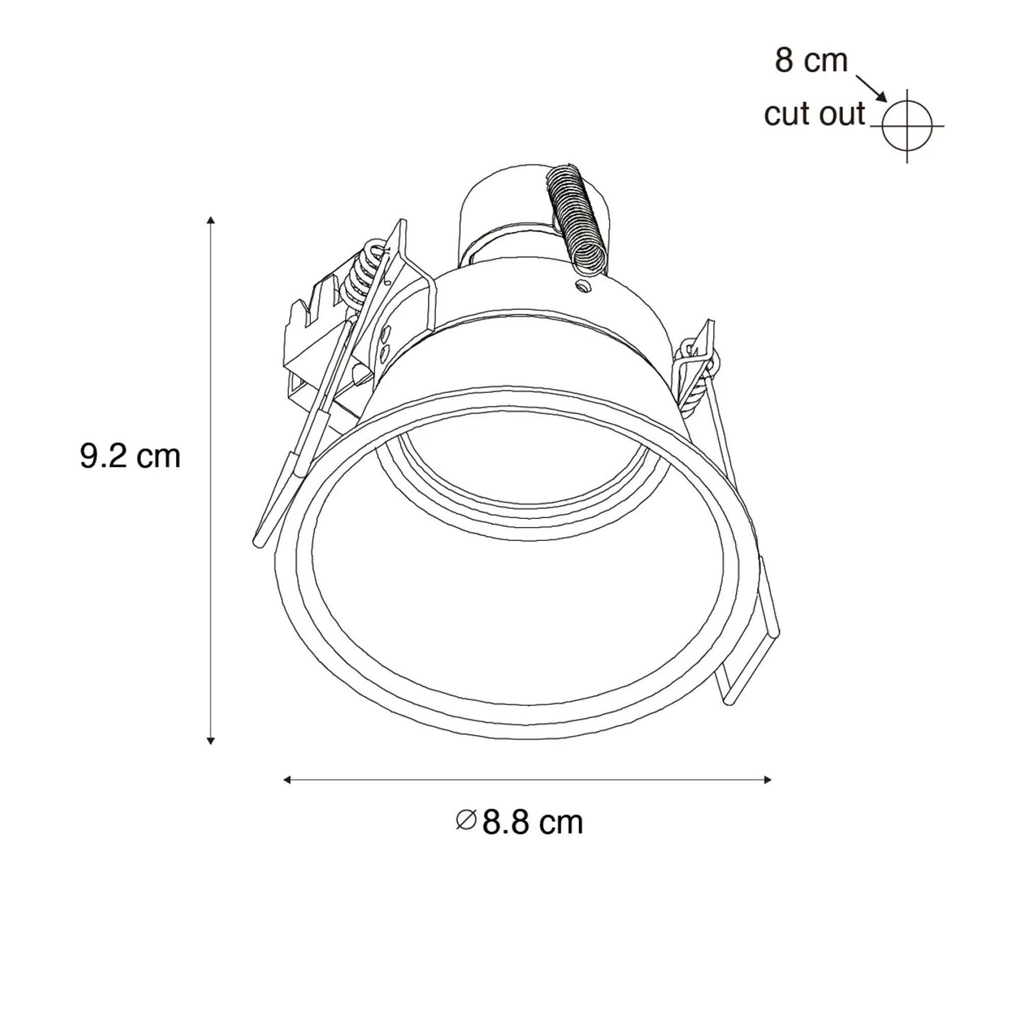 Le spot fonctionne avec une source lumineuse GU10 (10 watts maximum), que vous choisissez facilement vous-même en fonction de vos besoins. Optez par exemple pour une lumière blanc chaud pour une atmosphère détendue dans la salle de bains, ou choisissez une lumière plus vive si vous souhaitez l'utiliser principalement de manière fonctionnelle. Le luminaire est dimmable (avec un variateur externe adapté), ce qui vous permet d'ajuster l'intensité lumineuse en fonction du moment : lumière vive pendant que vous vous habillez ou vous maquillez, lumière douce lors d'une soirée de détente dans le bain. Cela rend ce spot encastré flexible à l'usage et économe en énergie, car vous n'êtes pas obligé d'éclairer toujours à pleine puissance. Vous tirez ainsi davantage de confort d'une solution compacte.
