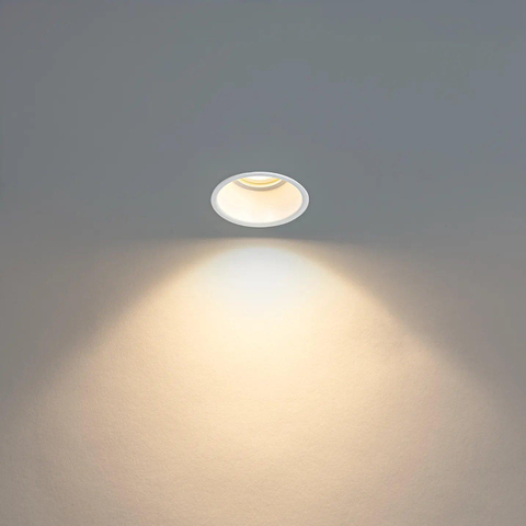 - Spot encastré moderne blanc mat qui se fond parfaitement dans un plafond épuré