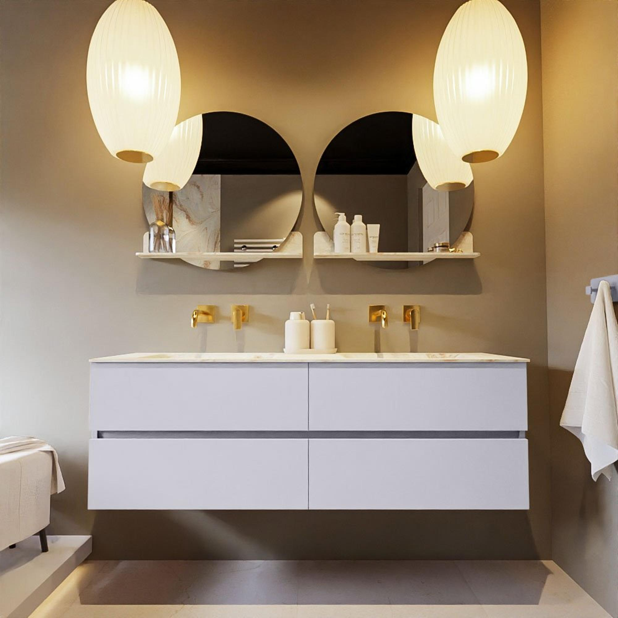 Entrez dans un univers de luxe avec l'ensemble meuble de salle de bains Mondiaz VICA-DLUX. Les matériaux et la finition de haute qualité procurent une sensation de luxe et de raffinement dans votre salle de bains. Le double lavabo sans trou de robinet ajoute une touche d'exclusivité, tandis que la version XL de 60cm de hauteur donne une apparence grandiose à votre salle de bains.
