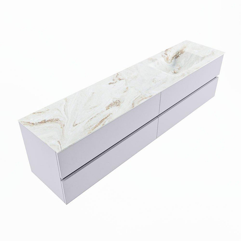 Mondiaz VICA-DLUX Ensemble de meuble de salle de bains - 200cm - cale - 4 tiroirs - Lavabo encastré CLOUD - droite - 1 trou de robinet - couleur Frappe - version XL 60cm de haut