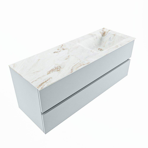 Mondiaz VICA-DLUX Ensemble meuble de salle de bains - 130cm - clay - 2 tiroirs - Lavabo encastré CLOUD - droite - 1 trou de robinet - couleur Frappe - Version XL 60cm de hauteur
