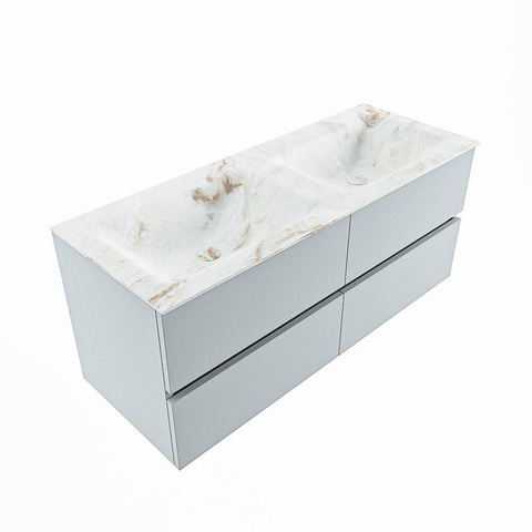 Mondiaz VICA-DLUX Ensemble meuble de salle de bains - 120cm - clay - 4 tiroirs - Lavabo encastré CLOUD - double sans trou de robinet - couleur Frappe - version XL 60cm de haut