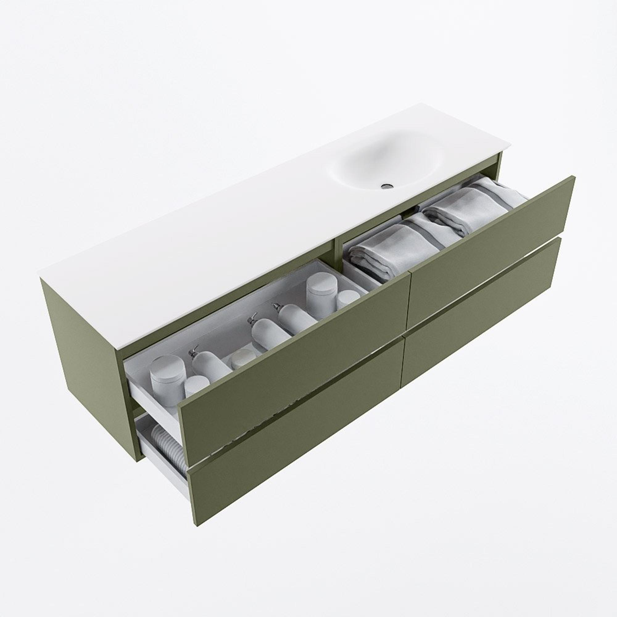 Mondiaz VICA Ensemble meuble de salle de bains - 170cm - army - 4 tiroirs - Lavabo MOON - à droite - 1 trou de robinet - couleur talc - Version XL 60cm de hauteur