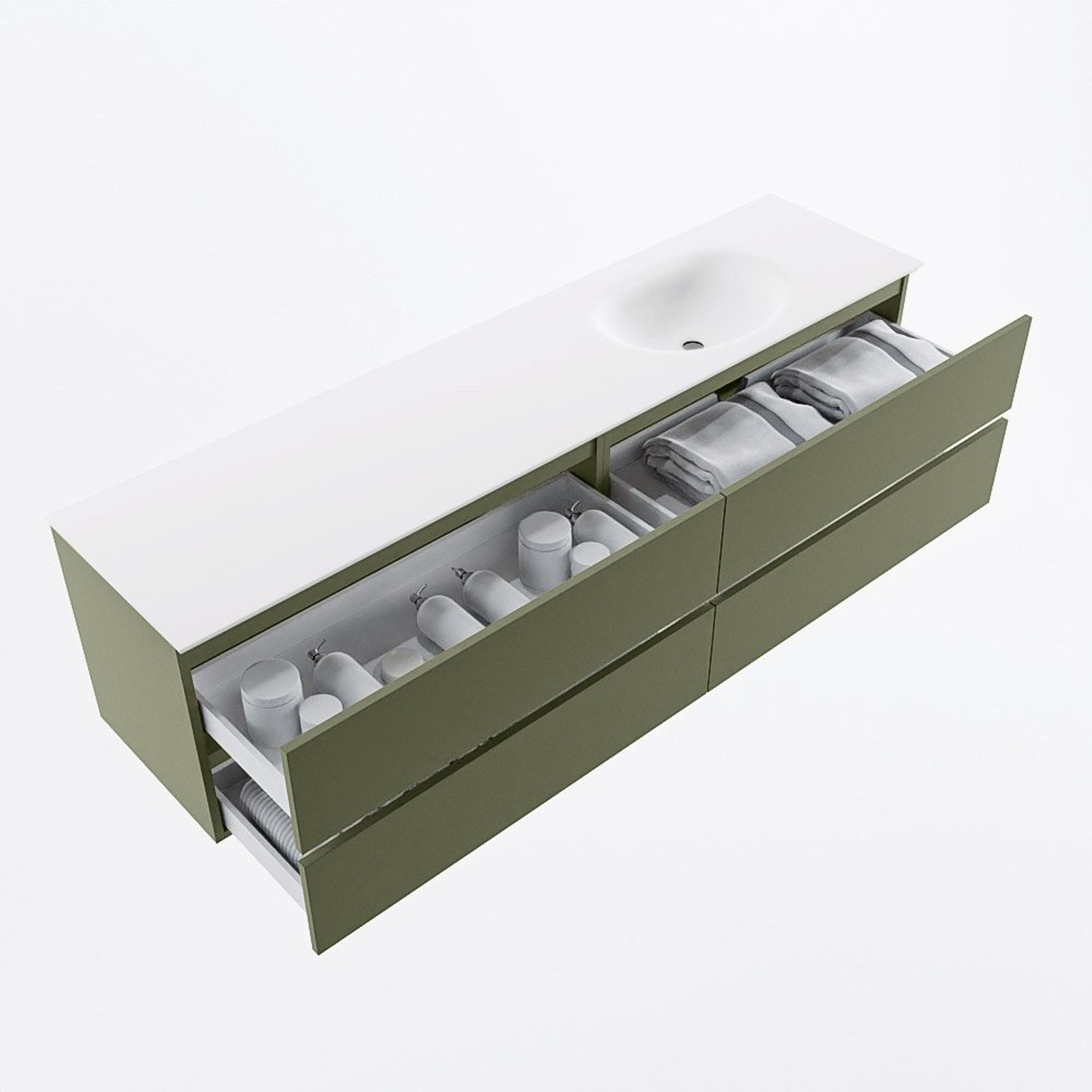 Mondiaz VICA Ensemble meuble de salle de bains - 190cm - army - 4 tiroirs - Lavabo MOON - droite - 1 trou de robinet - couleur talc - Version XL 60cm de haut