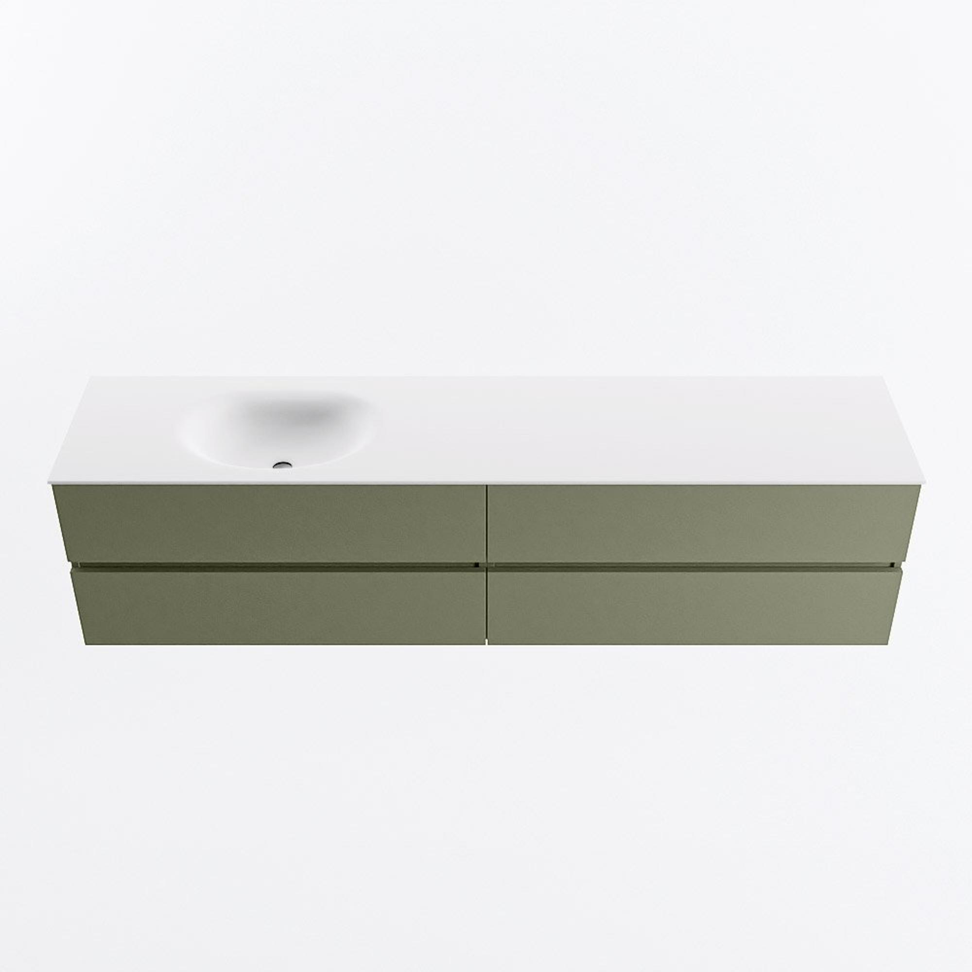 Mondiaz VICA Ensemble de meubles de salle de bains - 200cm - army - 4 tiroirs - Lavabo MOON - gauche - sans trou de robinet - couleur talc - Version XL 60cm de haut