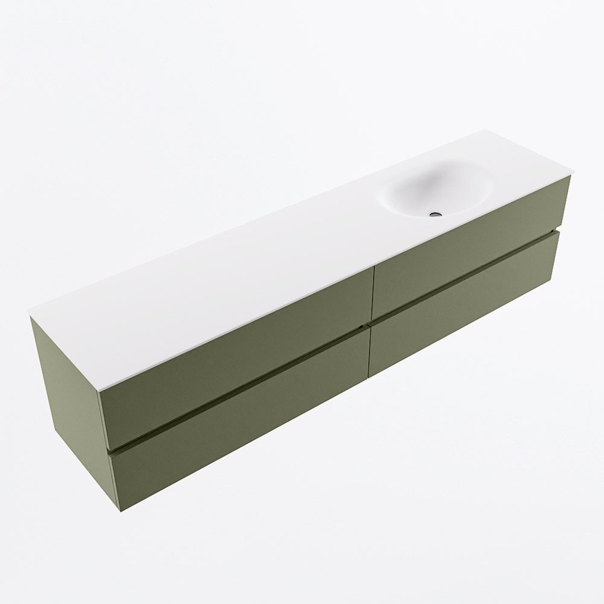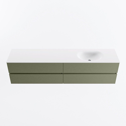 Mondiaz VICA Ensemble meuble de salle de bains - 200cm - army - 4 tiroirs - Lavabo MOON - droite - sans trou de robinet - couleur talc - Version XL 60cm de haut
