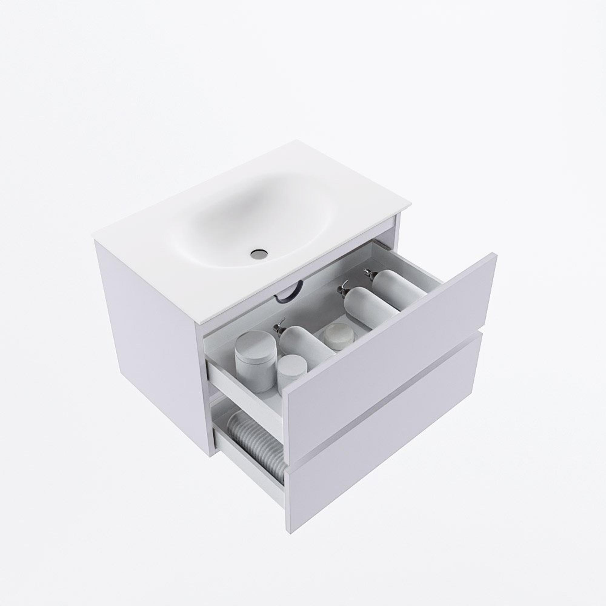 Mondiaz VICA Ensemble meuble de salle de bains - 70cm - cale - 2 tiroirs - Lavabo MOON - central - 1 trou de robinet - couleur talc - version XL 60cm de haut