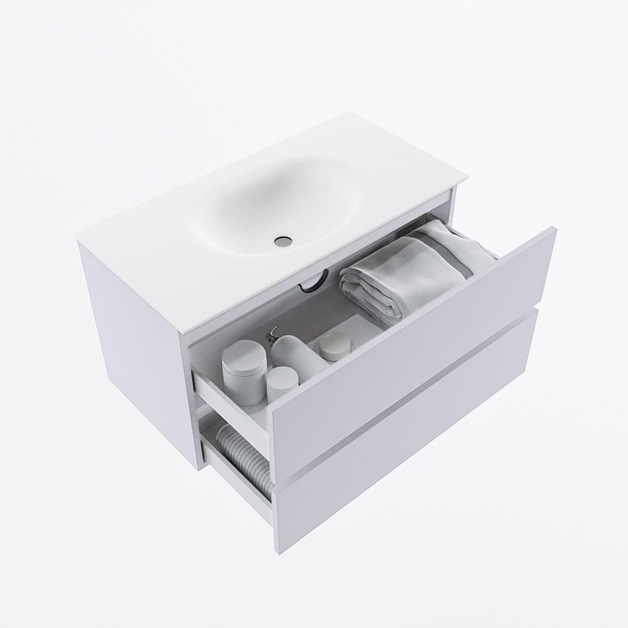 Mondiaz VICA Ensemble meuble de salle de bains - 90cm - cale - 2 tiroirs - Vasque MOON - au centre - 1 trou de robinet - couleur talc - Version XL 60cm de haut