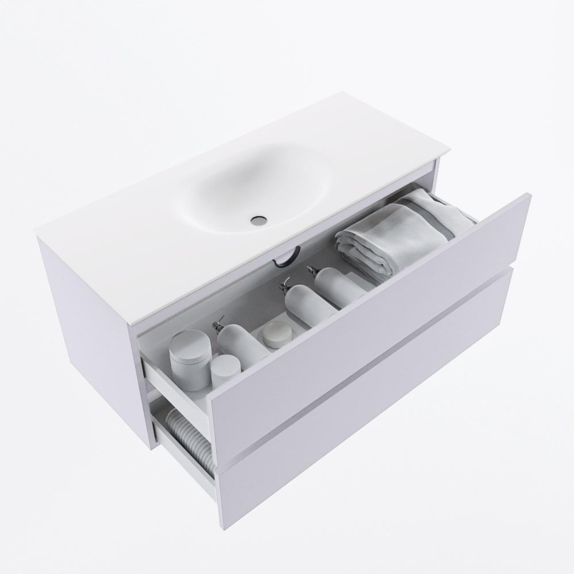 Mondiaz VICA Ensemble de meubles de salle de bains - 110cm - cale - 2 tiroirs - Lavabo MOON - au milieu - 1 trou de robinet - couleur talc - Version XL 60cm de haut