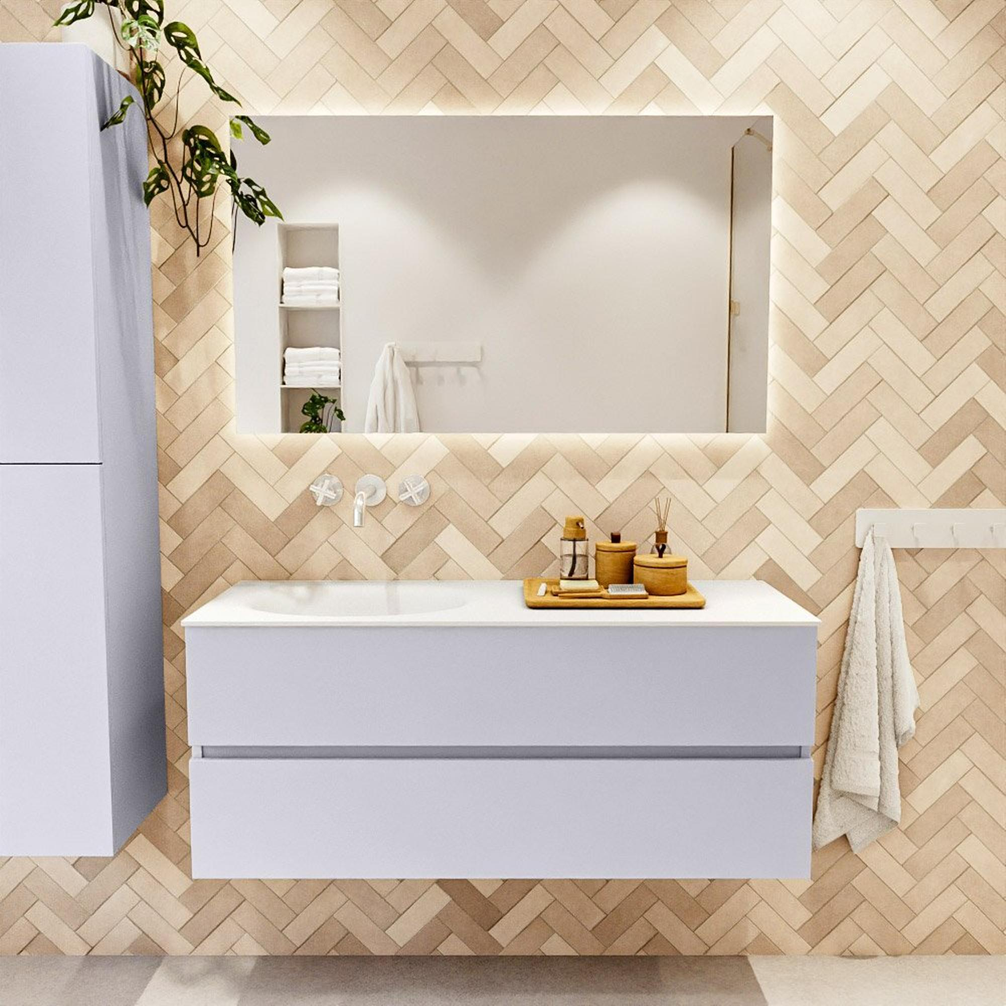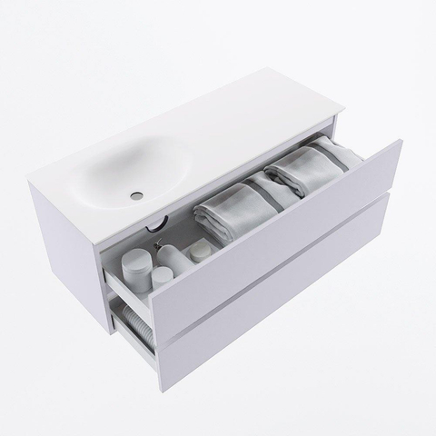 Mondiaz VICA Ensemble meuble de salle de bains - 120cm - cale - 2 tiroirs - Lavabo MOON - gauche - sans trou de robinet - couleur talc - version XL 60cm de haut
