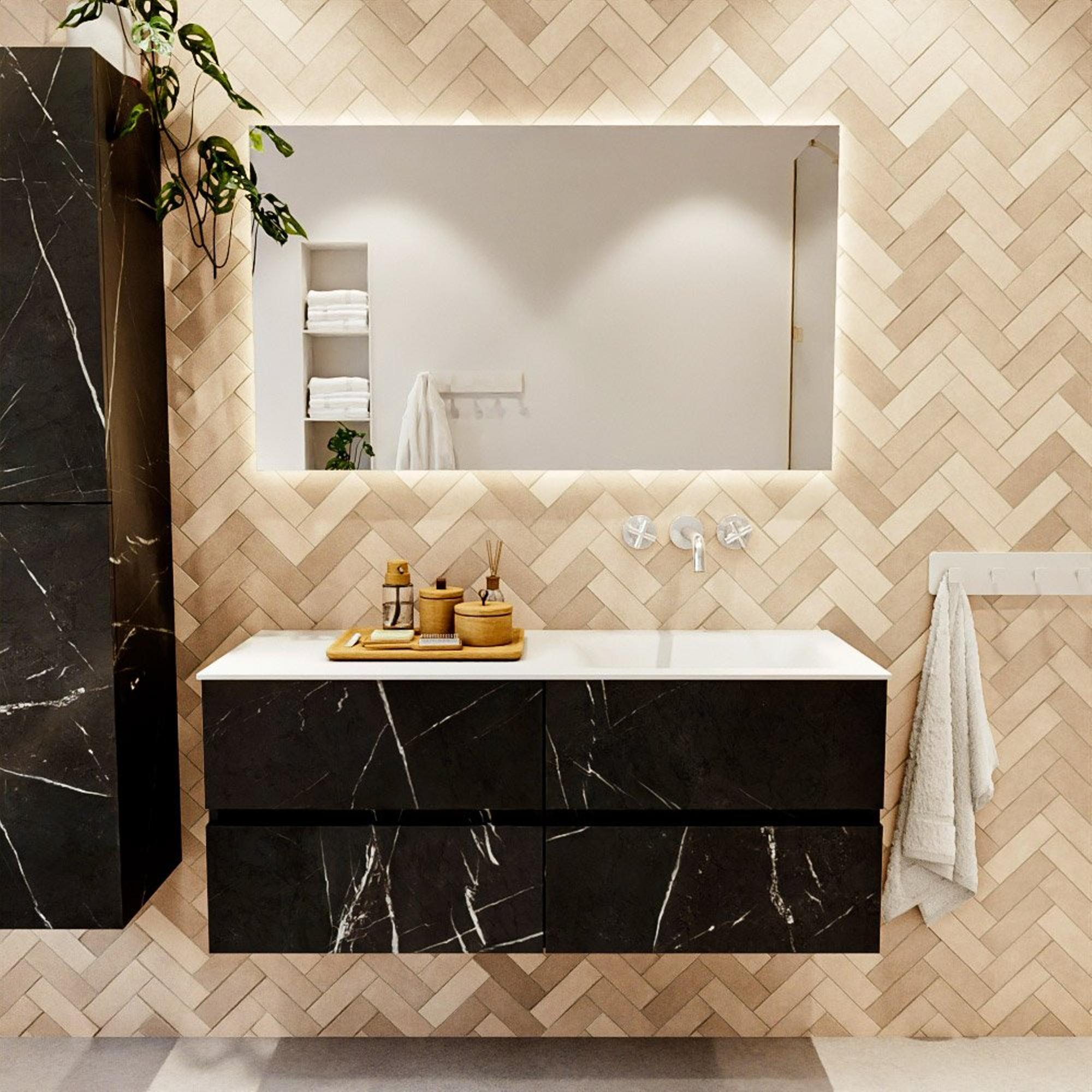 Mondiaz VICA Ensemble de meubles de salle de bains - 120cm - Marquina 4 tiroirs - Lavabo CLOUD - à droite - sans trou de robinet - couleur talc - version XL 60cm de haut