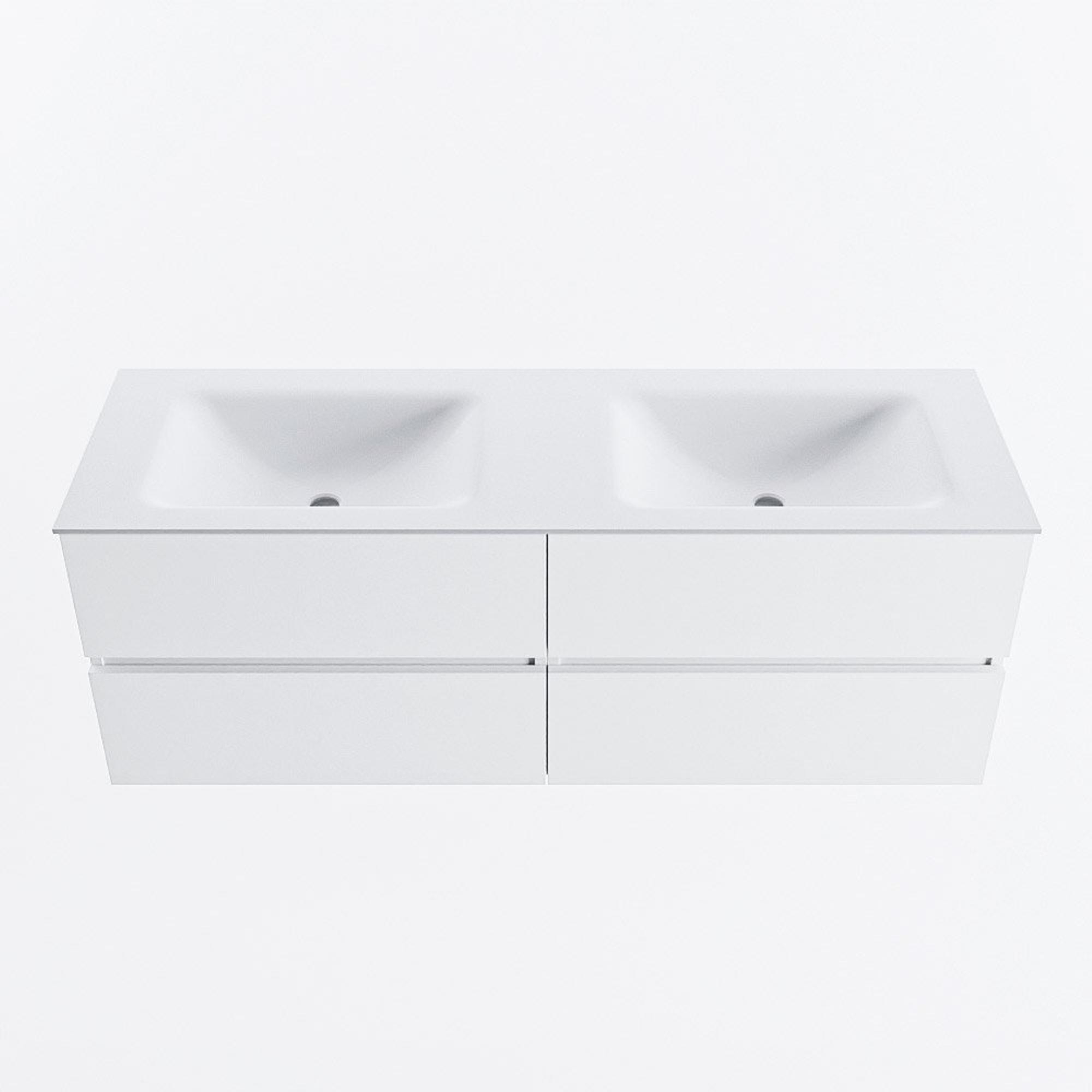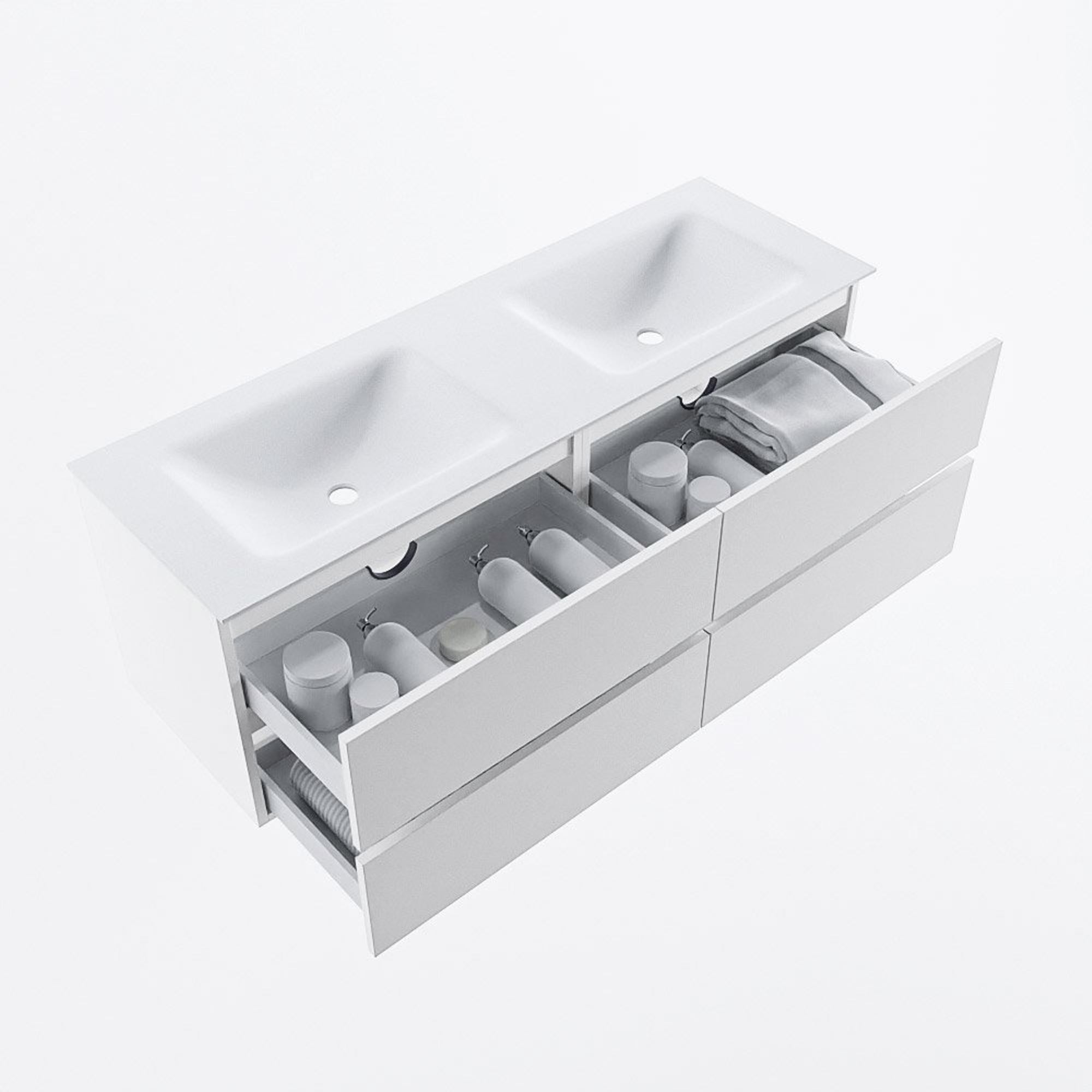Mondiaz VICA Ensemble meuble de salle de bains - 140cm - talc - 4 tiroirs - Lavabo CLOUD - double 2 trous de robinet - couleur talc - version XL 60cm de hauteur