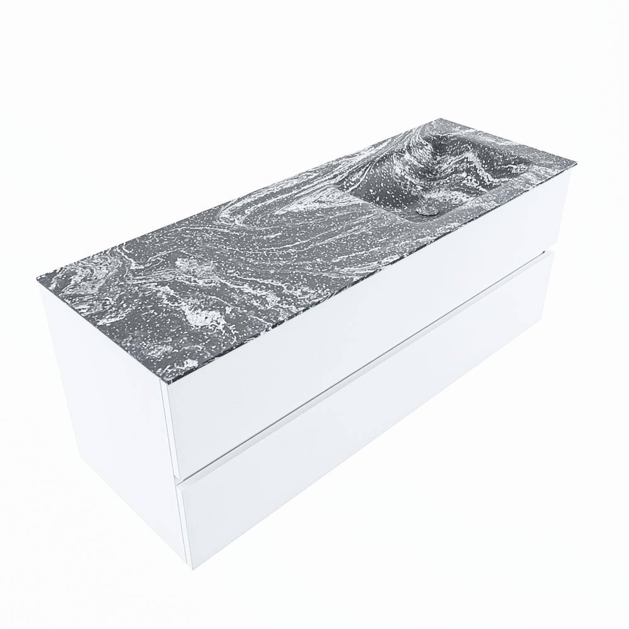 Mondiaz VICA-DLUX Ensemble meuble de salle de bains - 130cm - talc - 2 tiroirs - Lavabo encastré CLOUD - droite - 1 trou de robinet - couleur Lava - Version XL 60cm de hauteur