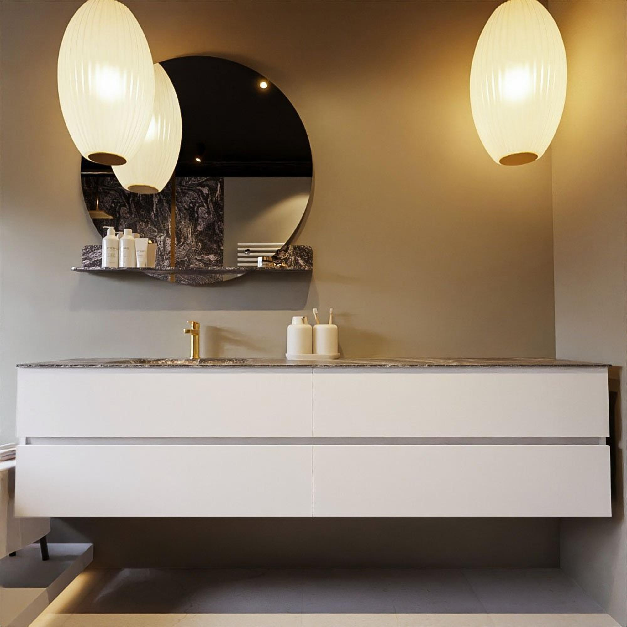 La version XL de cet ensemble meuble de salle de bains donne une sensation de luxe et de grandeur à la pièce. Avec une longueur de 200cm et une hauteur de 60cm, ce meuble respire la qualité et le confort. Les 4 tiroirs sont spacieux et fonctionnels, tandis que la couleur Lava crée une atmosphère chaleureuse et accueillante.