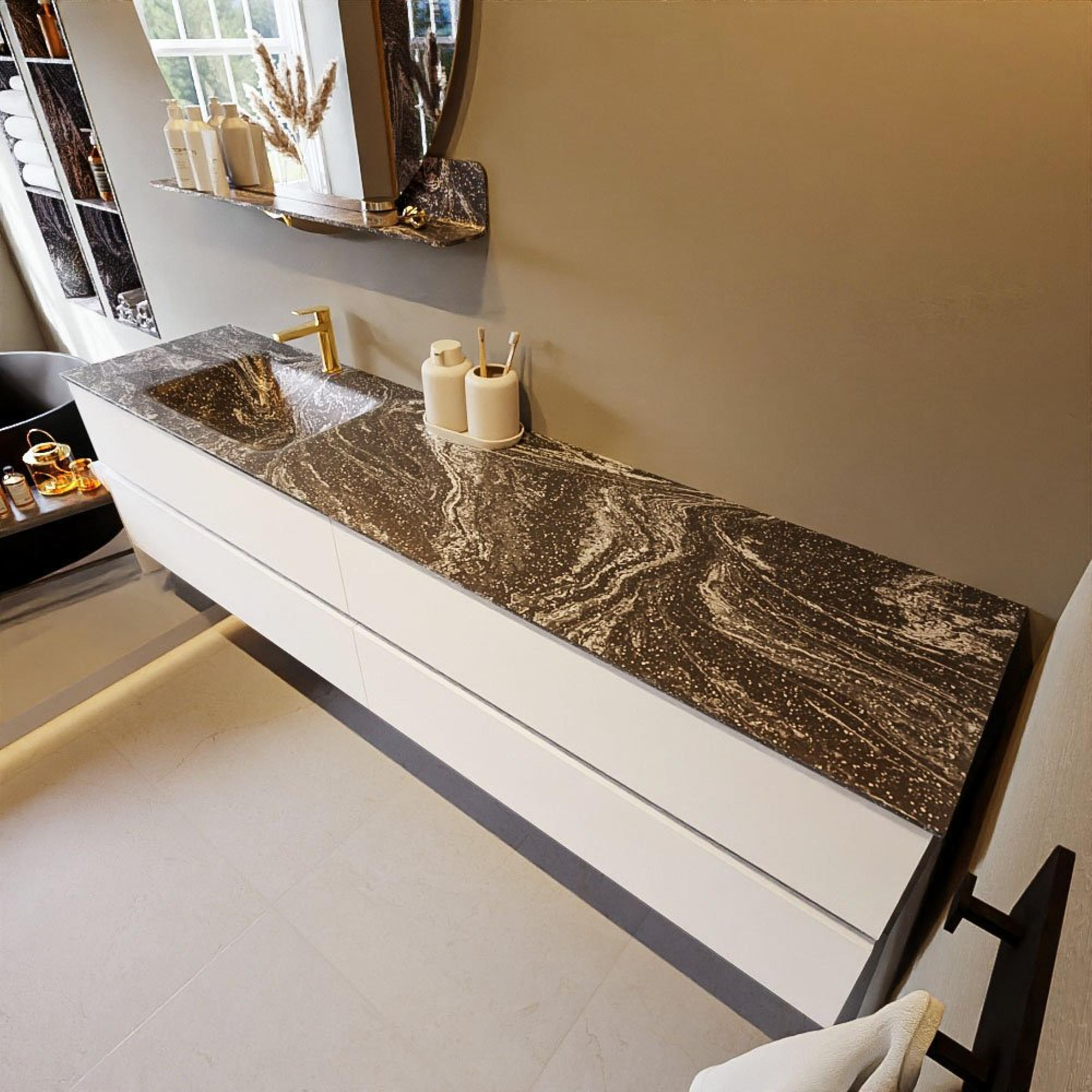 Mondiaz VICA-DLUX Badkamermeubelset - 200cm - talc - 4 lades - Inbouw wastafel CLOUD - dubbel 2 kraangaten - kleur Lava - XL versie 60cm hoog