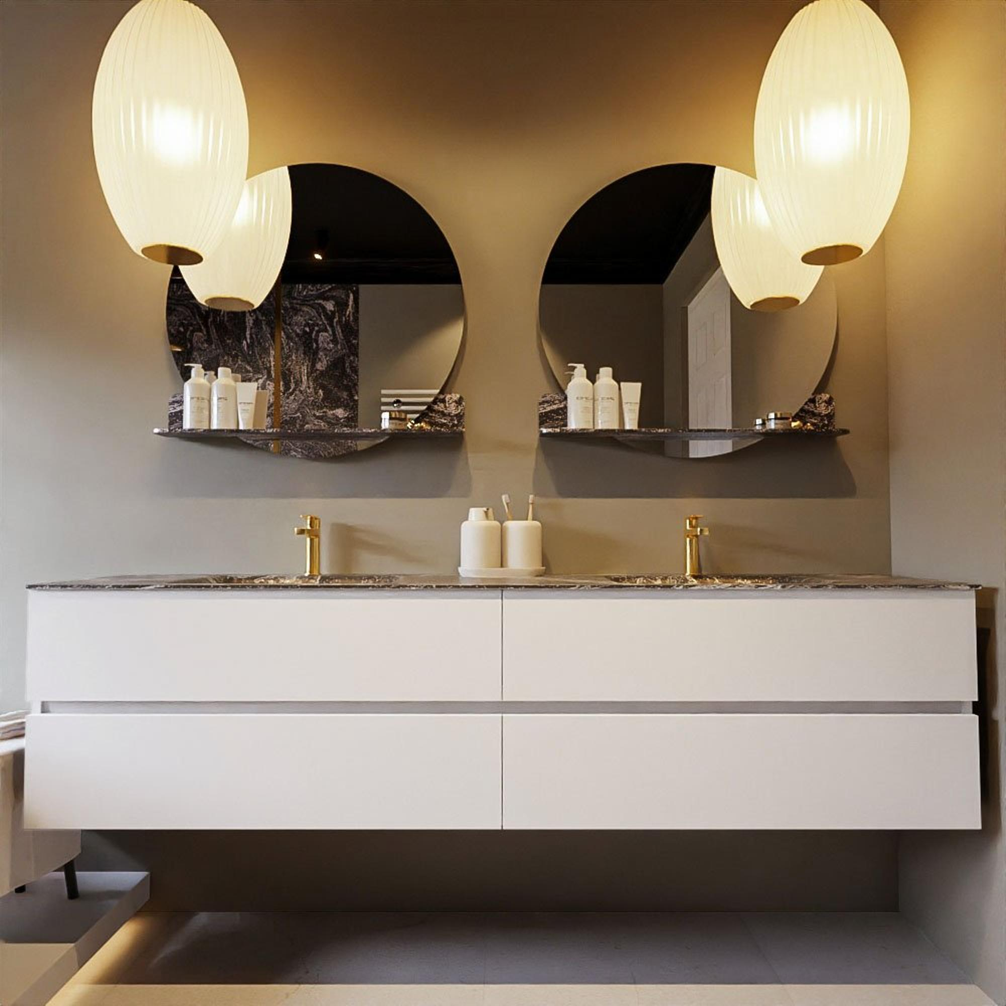 Composées de meubles de salle de bains magnifiques et fort prisés, les collections de la marque Mondiaz vous sont proposées à des prix très attrayants. Fournisseur d'élégance pour la salle de bains, Mondiaz habile votre salle de bains de vasques modernes et de miroirs sophistiqués. Mondiaz ose tous les styles : choisissez un meuble en bois pour un look campagnard ou optez pour du marbre pour un effet moderne et stylé. Les produits de la marque Mondiaz sont connus pour leur excellent rapport qualité-prix. |