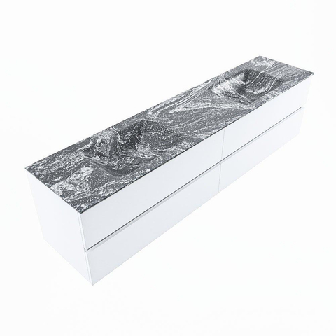 Mondiaz VICA-DLUX Ensemble meuble de salle de bains - 200cm - talc - 4 tiroirs - Lavabo encastré CLOUD - double 2 trous de robinet - couleur Lava - version XL 60cm de hauteur