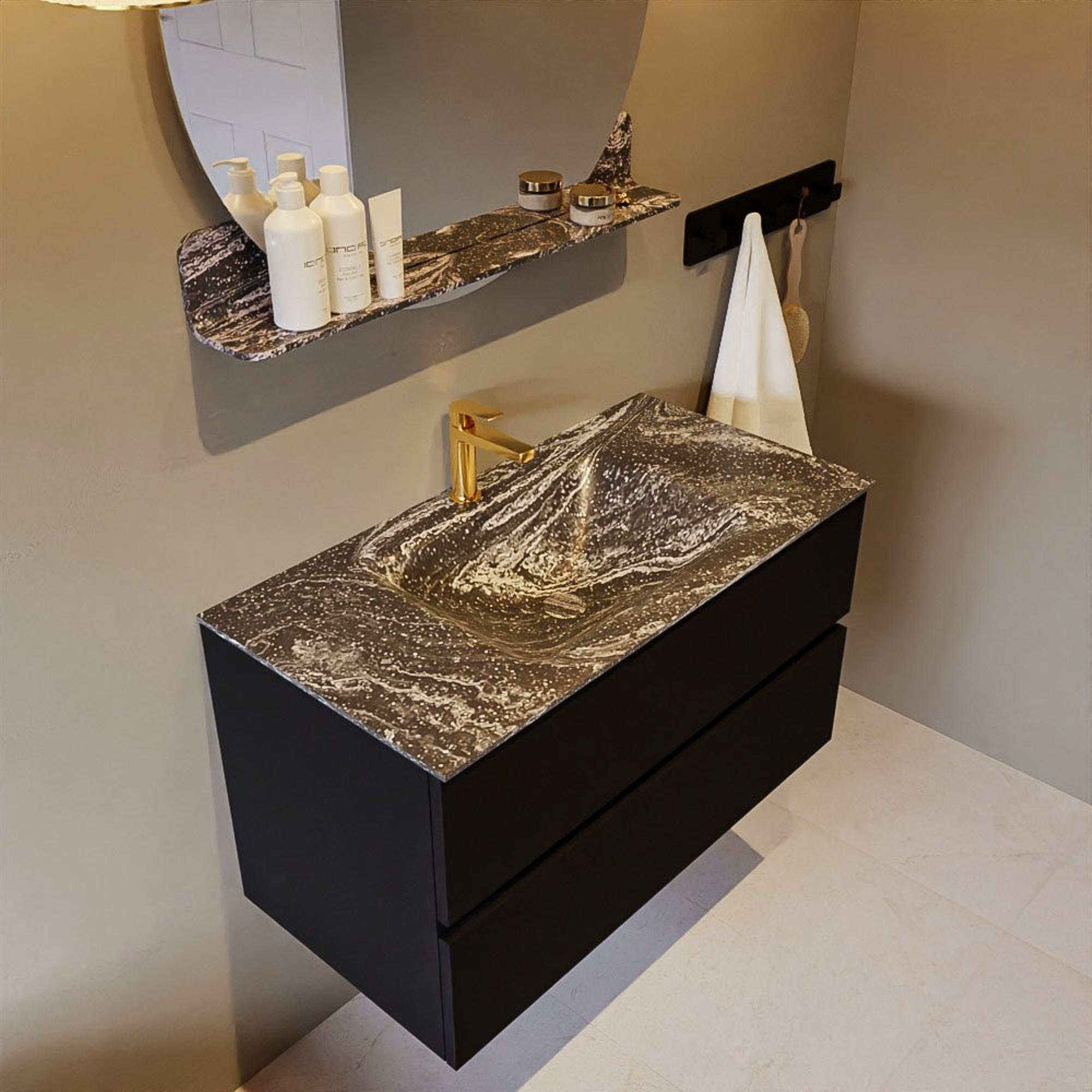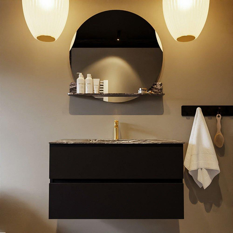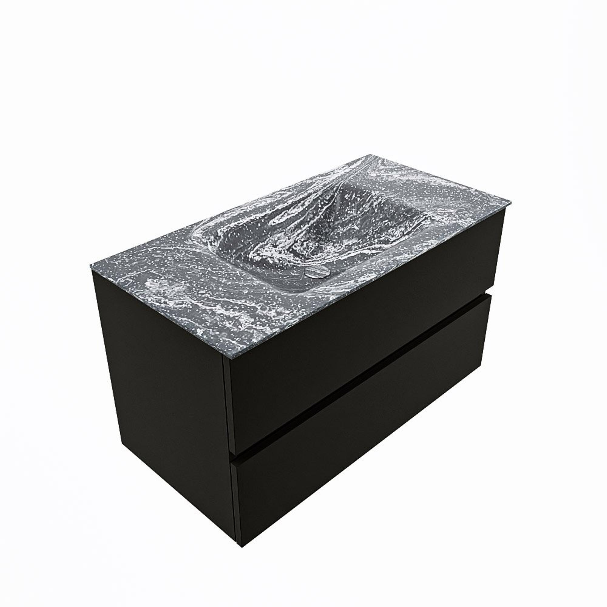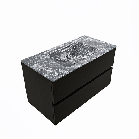 Mondiaz VICA-DLUX Ensemble meuble de salle de bains - 90cm - urban - 2 tiroirs - Lavabo encastré CLOUD - central - 1 trou de robinet - couleur Lava - version XL 60cm de haut