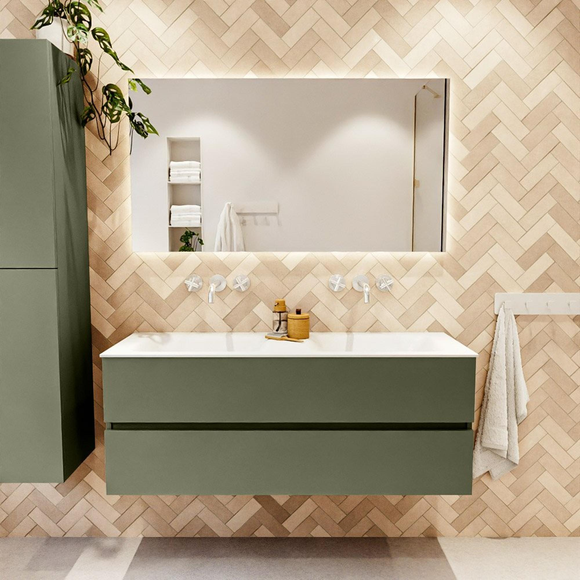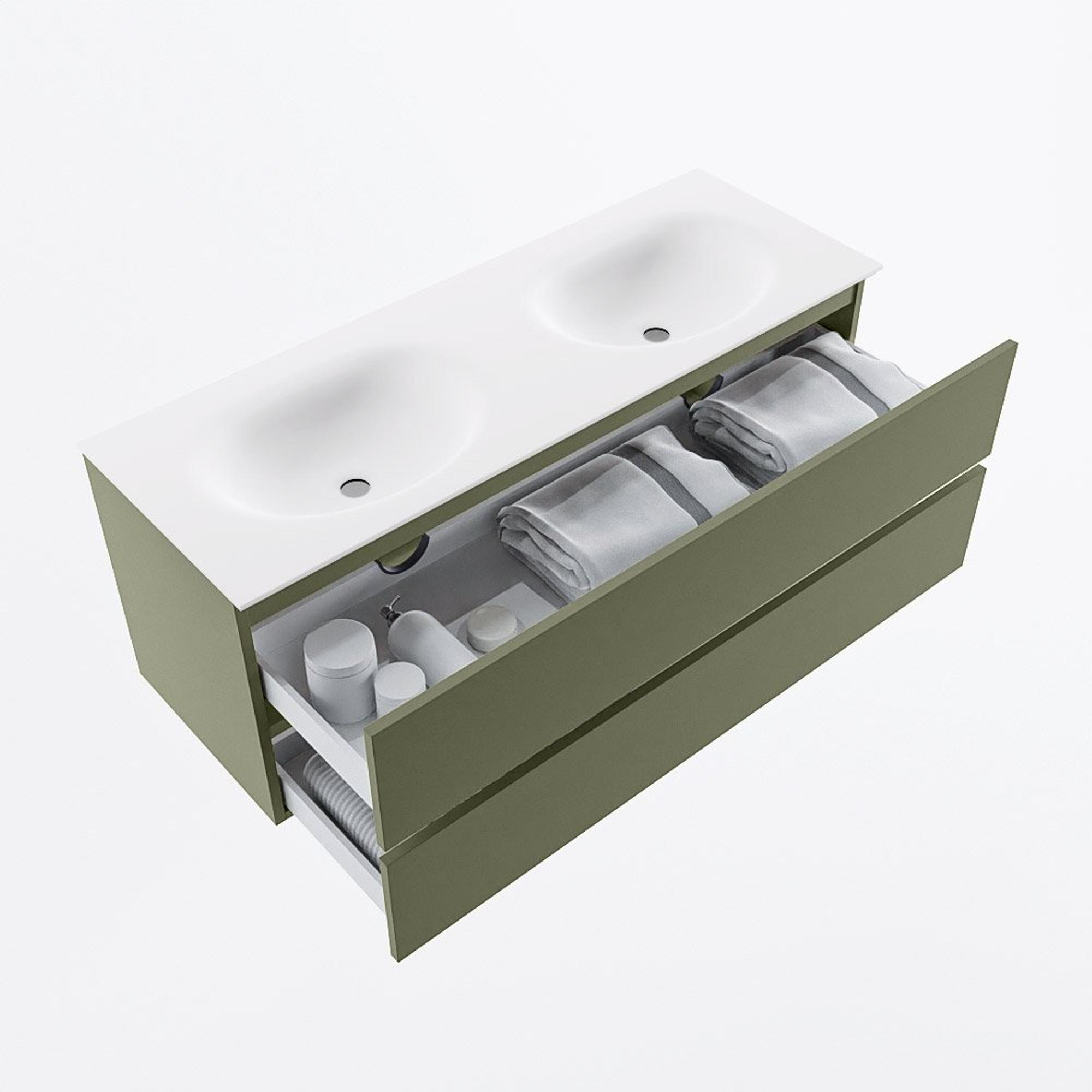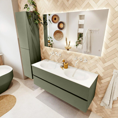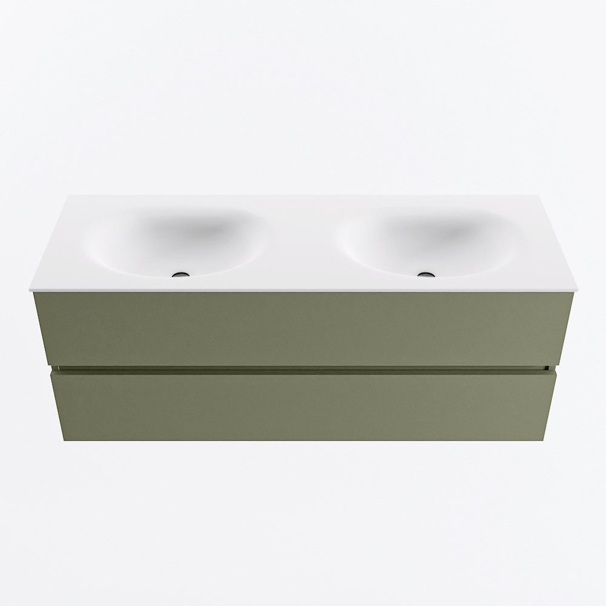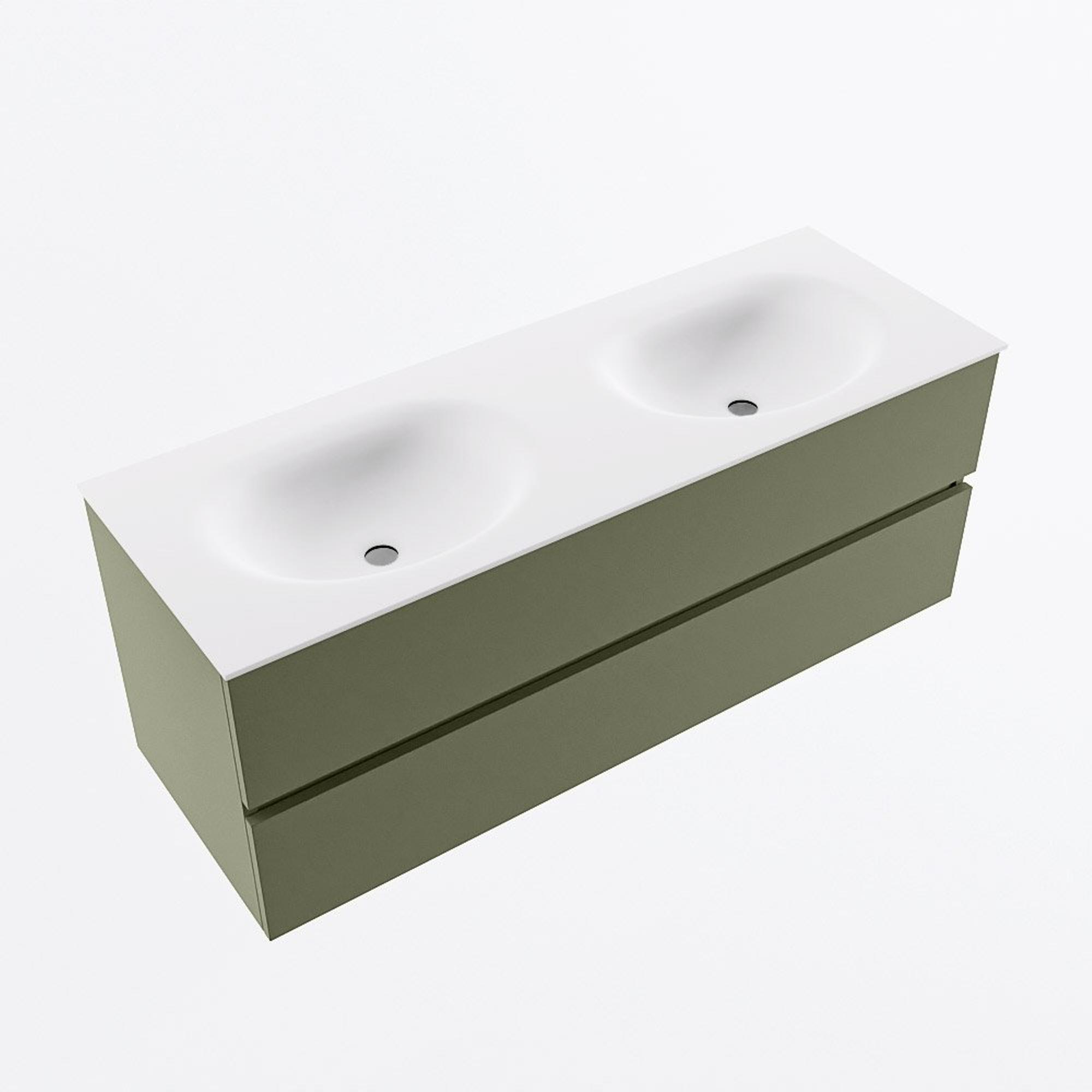 Mondiaz VICA Ensemble meuble de salle de bains - 130cm - army - 2 tiroirs - Lavabo MOON - double sans trou de robinet - couleur talc - version XL 60cm de haut