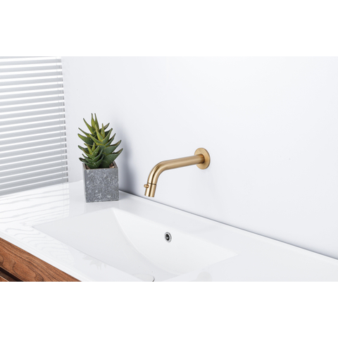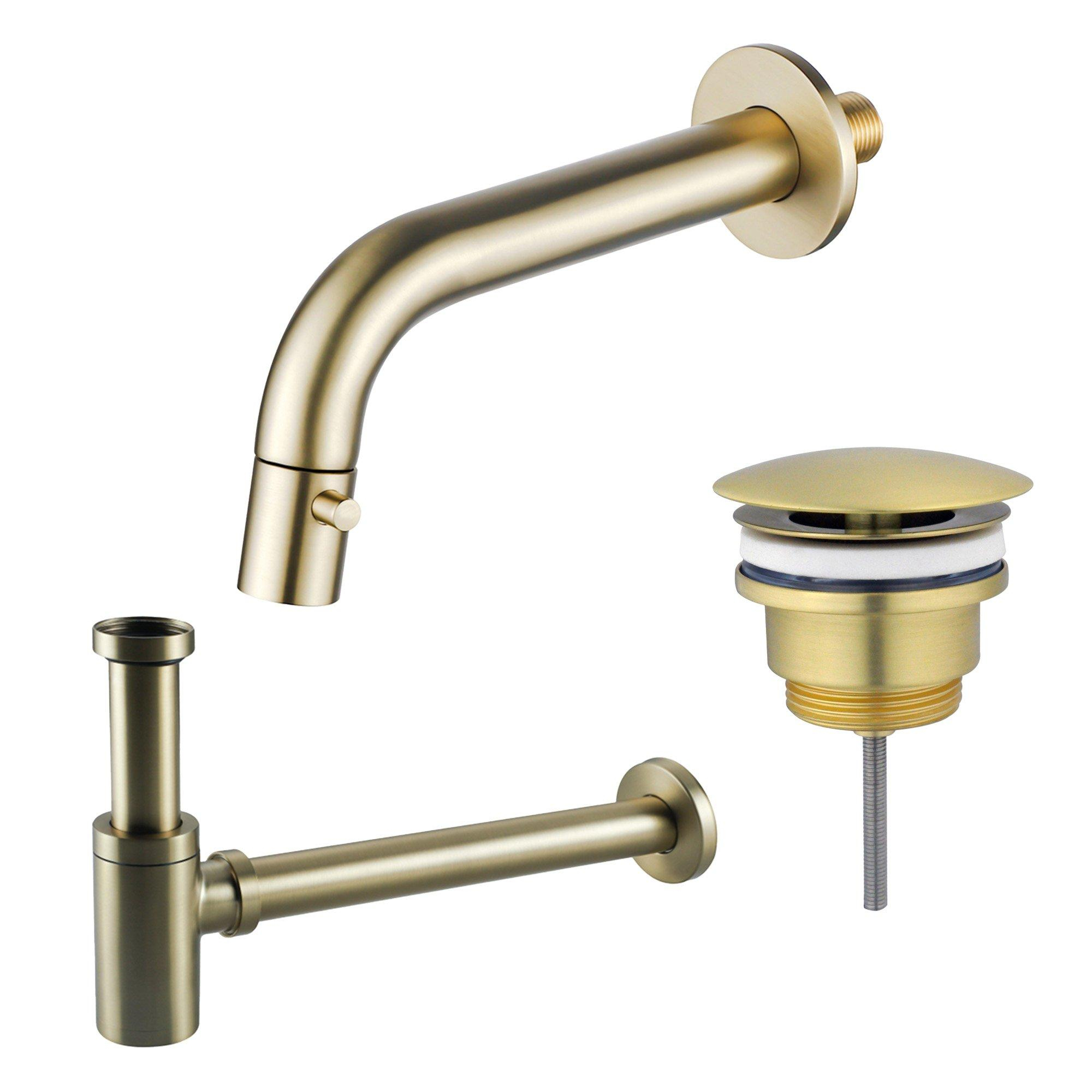 Fortifura Calvi Robinet de lave-mains encastré - bec 18 cm - raccourcissable - siphon - clapet always open - PVD - Laiton brossé PVD (or)