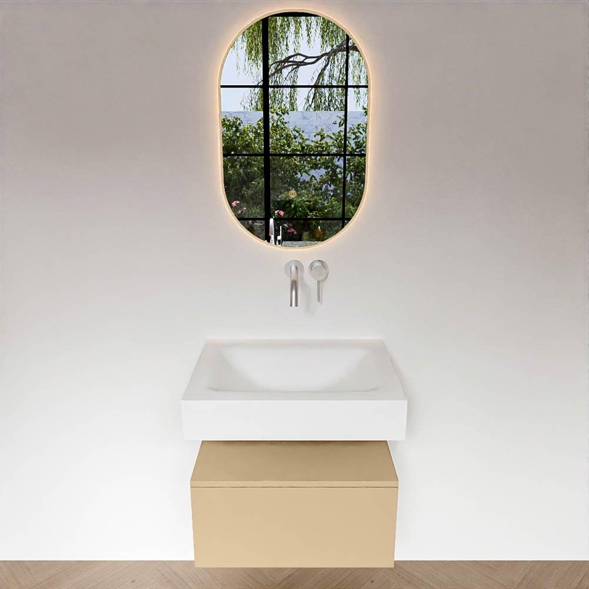 MONDIAZ ALAN Ensemble meuble de salle de bains - 60cm - meuble sous-vasque Sand - 1 tiroir - Lavabo suspendu CLOUD - central - sans trou de robinet - Talc
