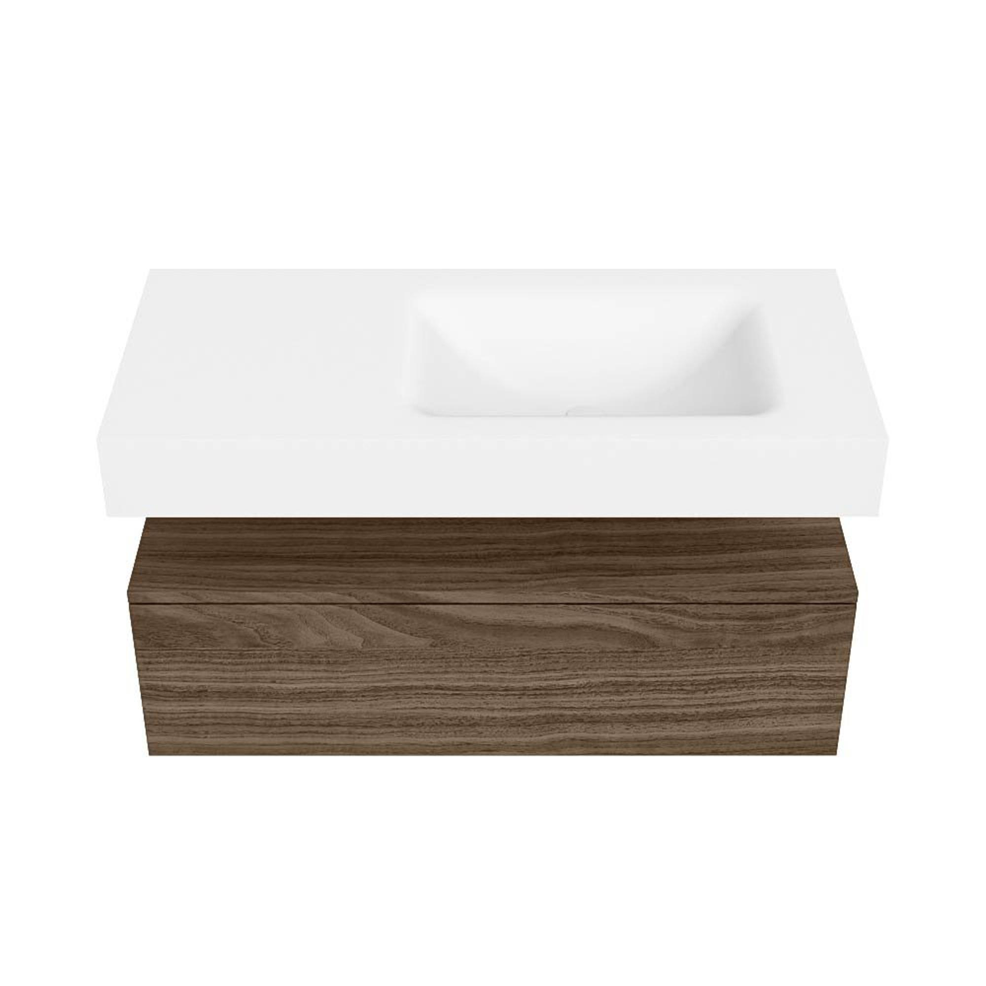 Avec un tiroir spacieux fonctionnant avec un système push-to-open pratique, vous avez toujours suffisamment d'espace de rangement à portée de main. La vasque suspendue avec un bac de lavage placé à droite sans trou de robinet offre une flexibilité maximale pour l'installation de votre robinet. Grâce aux dimensions de 100 cm de largeur et à l'agencement intelligent, cet ensemble s'adapte à presque toutes les salles de bains, grandes ou petites. Ce meuble combine un espace de rangement pratique avec un design épuré, ce qui permet à votre salle de bains de rester ordonnée et organisée. Vous profitez ainsi d'une salle de bains fonctionnelle qui est aussi très esthétique.