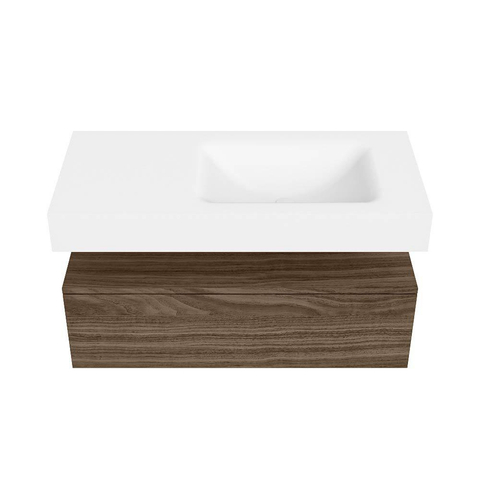 MONDIAZ ALAN Ensemble meuble de salle de bains - 100cm - meuble bas Mocha - 1 tiroir - Vasque suspendue CLOUD - droite - sans trou de robinet - Talc