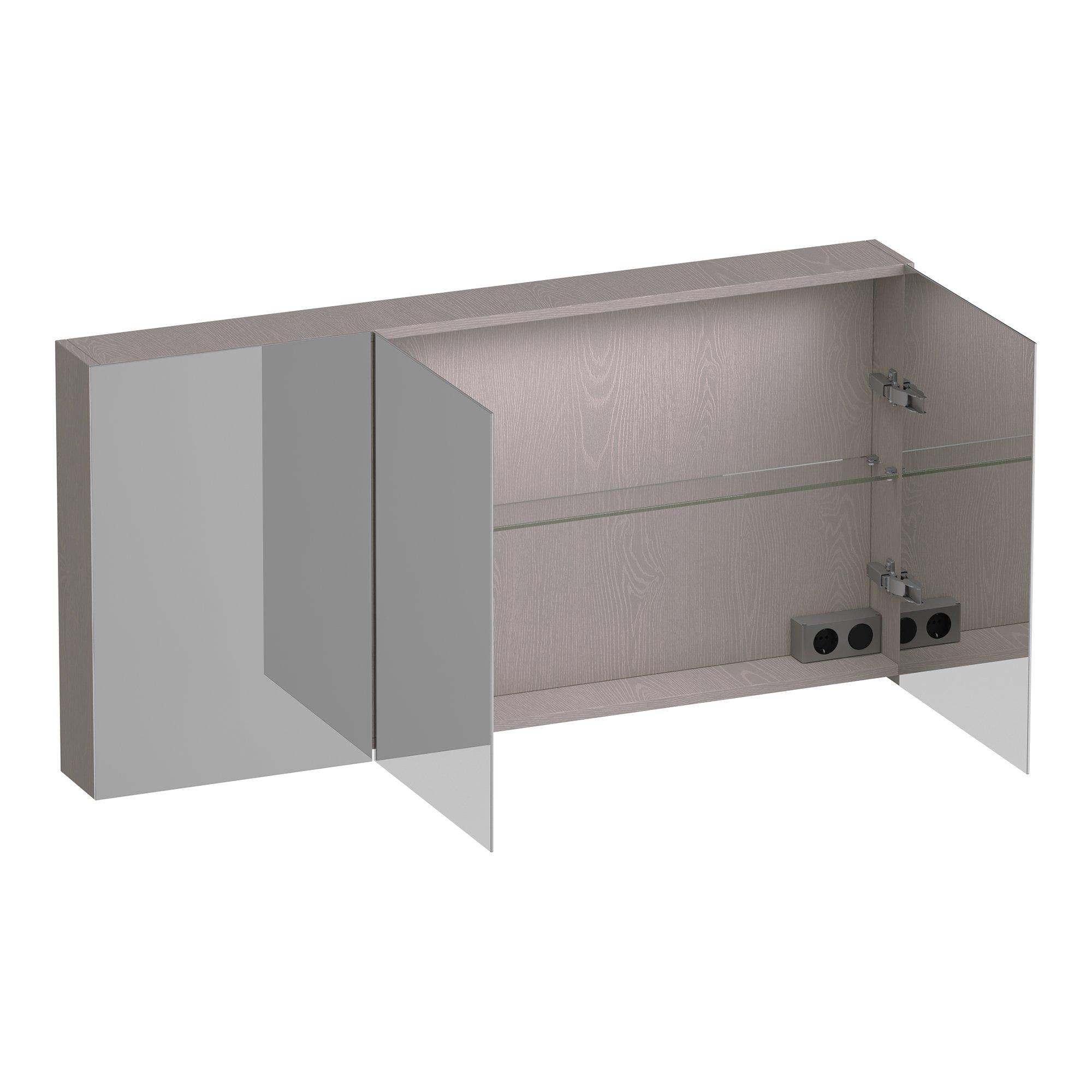 BRAUER Impress Deluxe armoire de toilette - 140x70x15cm - éclairage interne et externe - 3 portes miroir double face - Bois Grège