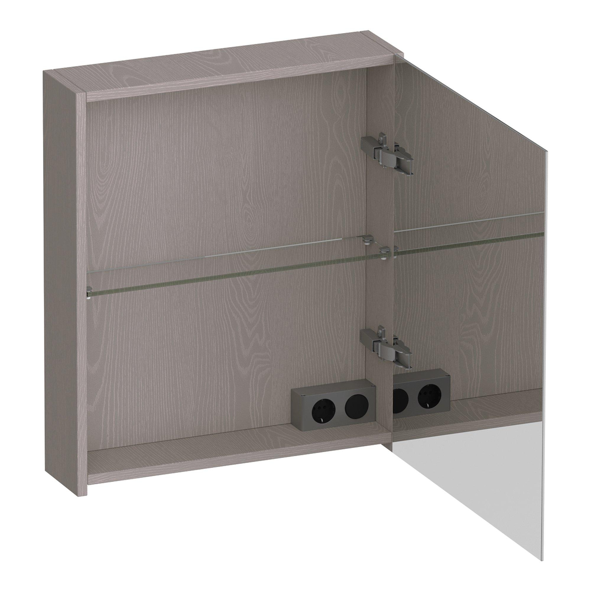 BRAUER Impress Armoire de toilette - 60x70x15cm - sans éclairage - avec 1 porte miroir double face à droite - Timber Greige