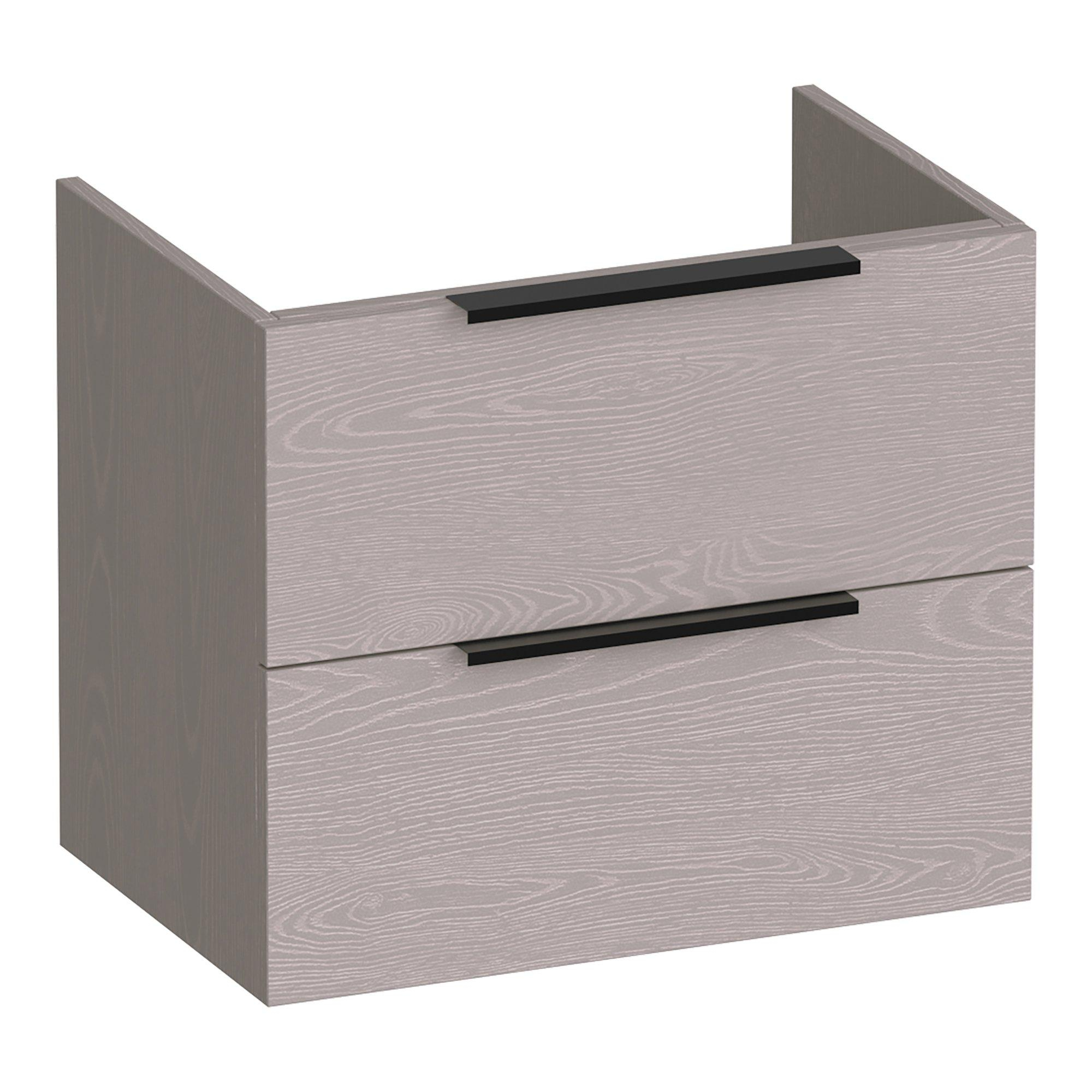 BRAUER Elevate meuble sous-lavabo peu profond 60 sans poignées rapportées 2 tiroirs à fermeture en douceur et 1 découpe pour siphon - Timber Greige