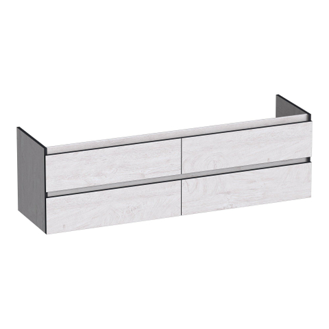 Avec ce meuble sous-lavabo spacieux, vous créez en une seule fois une salle de bains rangée et au look élégant. Grâce à la largeur de 160 cm et à l’agencement astucieux avec quatre tiroirs, ce meuble est idéal pour les grandes salles de bains ou un foyer animé où plusieurs personnes utilisent le lavabo en même temps. La couleur douce et apaisante Forest Seashell s’accorde parfaitement avec les intérieurs naturels, scandinaves ou modernes, et se marie facilement aussi bien avec des carreaux clairs que foncés. Grâce à la pose murale suspendue, l’espace paraît plus grand et le nettoyage sous le meuble devient bien plus simple. Si vous recherchez un meuble de salle de bains sans poignées, aux lignes épurées, avec beaucoup d’espace de rangement, double découpe pour siphon et une finition de haute qualité pour une utilisation quotidienne intensive, c’est un choix particulièrement judicieux.
