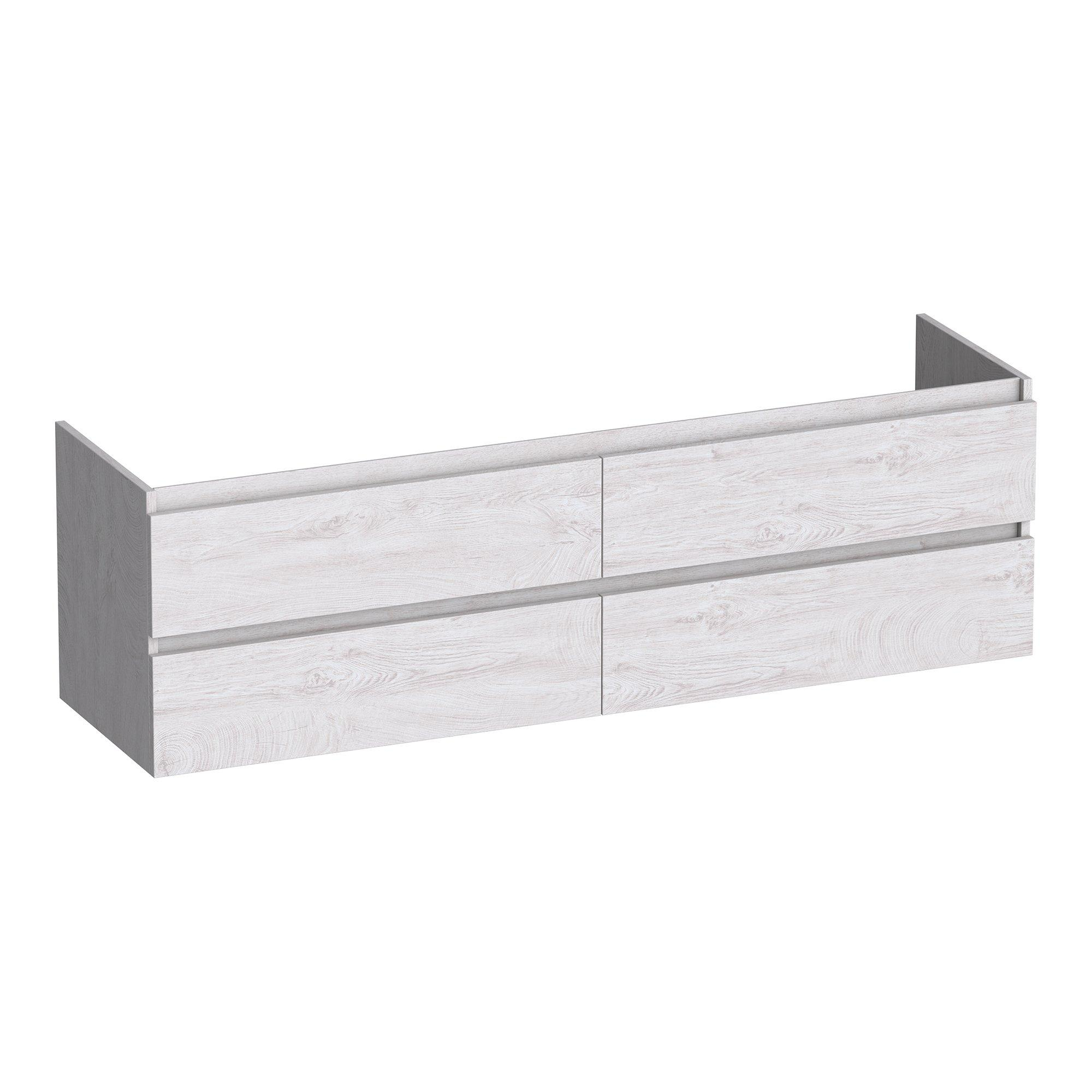 Ce meuble sous-lavabo spacieux est idéal si vous souhaitez créer une composition de lavabo large avec beaucoup d’espace de rangement, sans que la salle de bains paraisse chargée ou encombrée. Grâce au design épuré, sans poignées, et à la couleur apaisante Forest Seashell, ce meuble s’intègre parfaitement dans les salles de bains modernes, scandinaves et d’inspiration hôtel chic. Avec les doubles découpes pour siphon, c’est un choix malin si vous souhaitez installer un lavabo double ou deux vasques, par exemple dans une salle de bains familiale ou une suite parentale confortable. La pose suspendue donne visuellement plus d’espace au sol et facilite le nettoyage, tandis que les quatre tiroirs permettent de ranger de manière organisée et à portée de main tous les produits du quotidien. Si vous recherchez une combinaison de design, de fonctionnalité et de qualité durable, ce meuble constitue une base solide pour l’ambiance de votre nouvelle salle de bains.