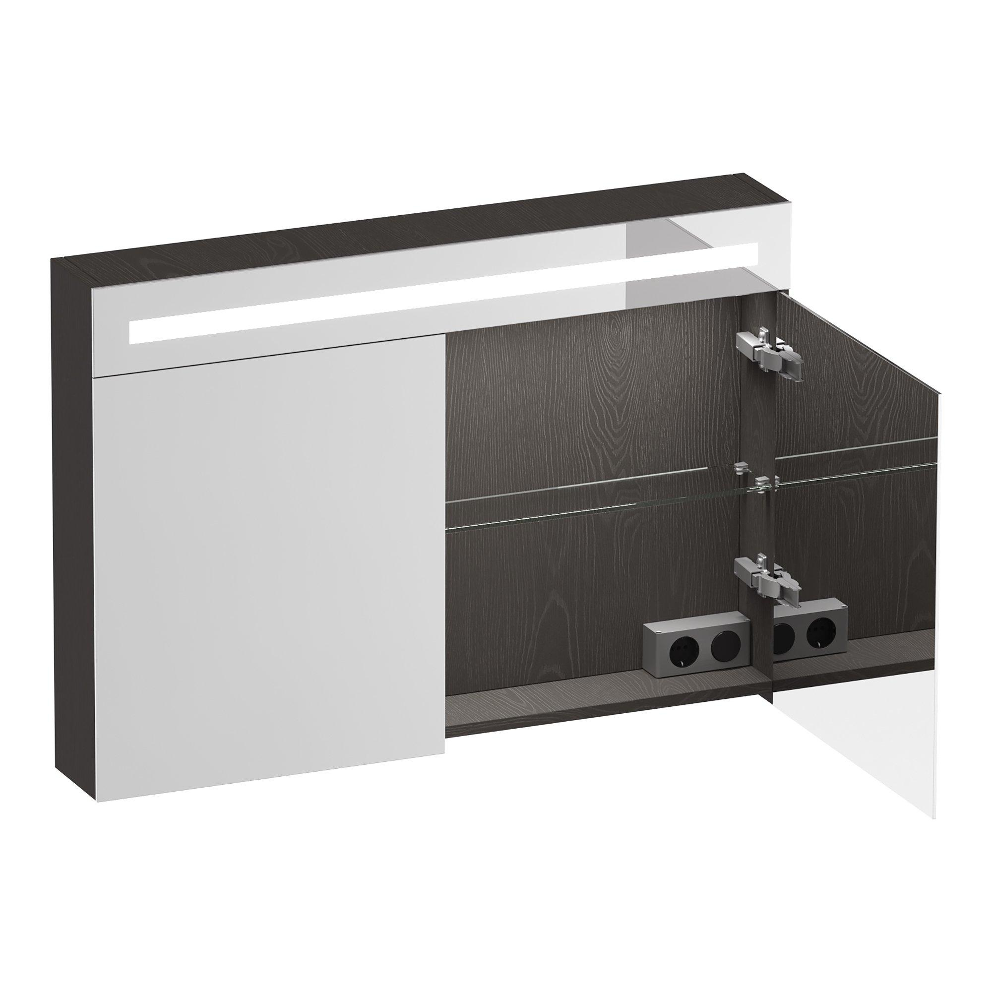BRAUER Promise Deluxe armoire de toilette - 100x70x15cm - avec éclairage - 2 portes miroir doubles - Anthracite Bois