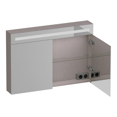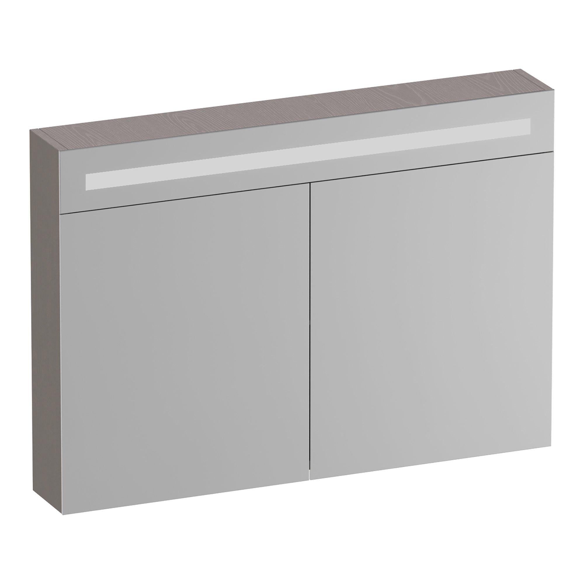 BRAUER Promise Deluxe armoire de toilette - 100x70x15cm - avec éclairage - 2 portes miroir doubles - Bois Grège