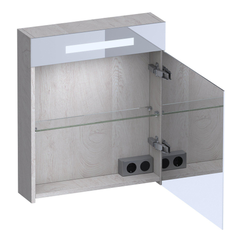 BRAUER Promise Deluxe armoire de toilette - 60x70x15cm - avec éclairage 1 porte de miroir double face s'ouvrant vers la droite Forest Seashell