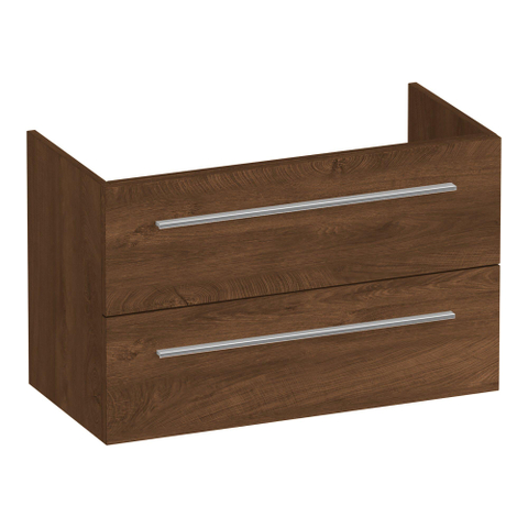 Vous recherchez un meuble de salle de bains élégant et peu encombrant, par exemple pour une salle de bains compacte, une chambre d'amis ou un espace toilettes épuré avec lavabo ? Alors ce meuble bas peu profond est un choix judicieux. Grâce à sa faible profondeur, le meuble empiète moins dans la pièce, tout en vous offrant un vaste espace de rangement dans deux tiroirs. La chaude teinte bois s’intègre parfaitement dans les salles de bains naturelles, modernes et de style hôtel chic et se marie bien avec des lavabos blancs ou colorés et des robinets par exemple noirs, chromés ou en métal brossé. Grâce à la pose murale, le sol paraît dégagé et spacieux, ce qui fait immédiatement la différence surtout dans les petits espaces. La découpe de siphon intégrée permet en outre de dissimuler proprement votre tuyauterie, sans complications lors de l’installation.