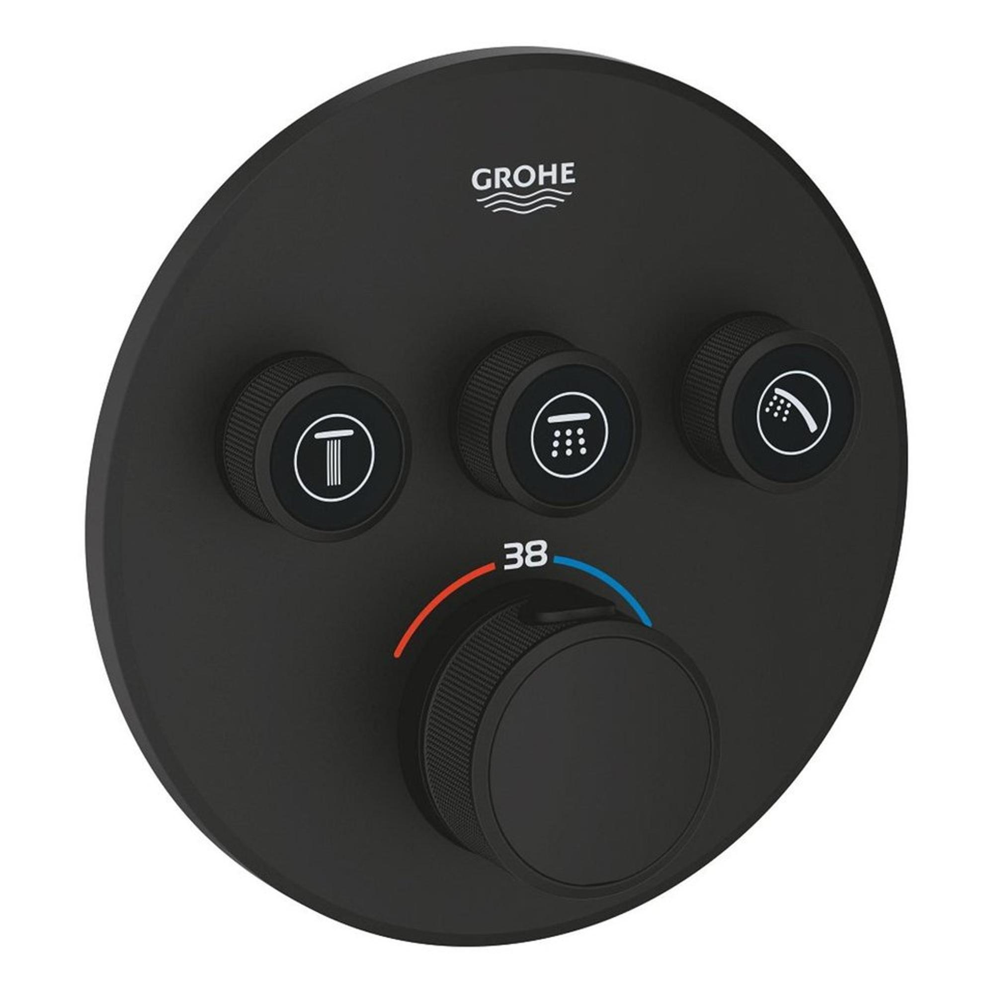 Grohe Grohtherm SmartControl Ensemble de douche pluie - boîtier d'encastrement - inverseur 3 voies - pomme de douche ronde - bras de plafond - support de douchette - douchette barre - phantom black