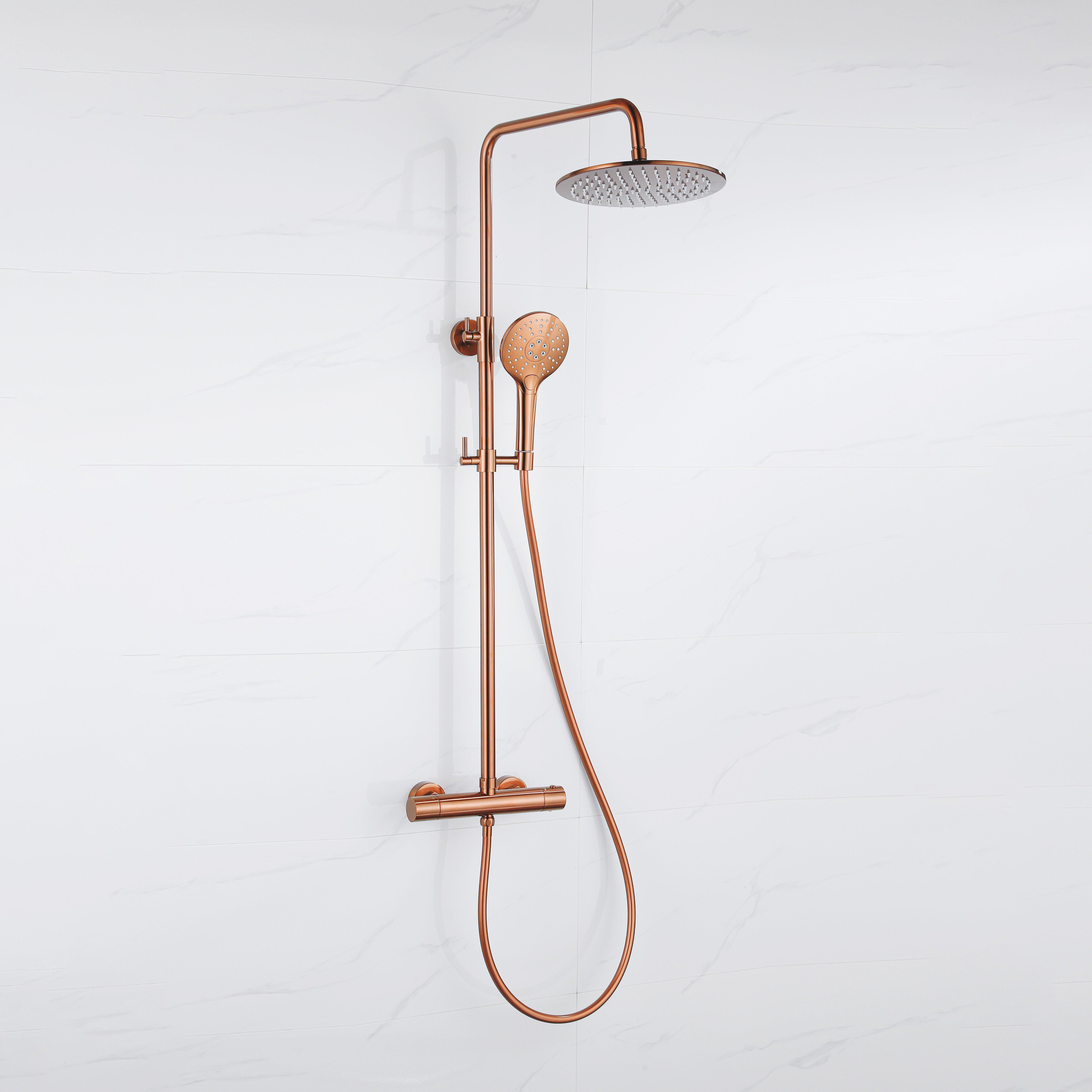 Fortifura Calvi Ensemble de douche pluie - thermostatique - douche principale de 25 cm - flexible lisse - douchette ronde - Cuivre brossé PVD (Cuivre)
