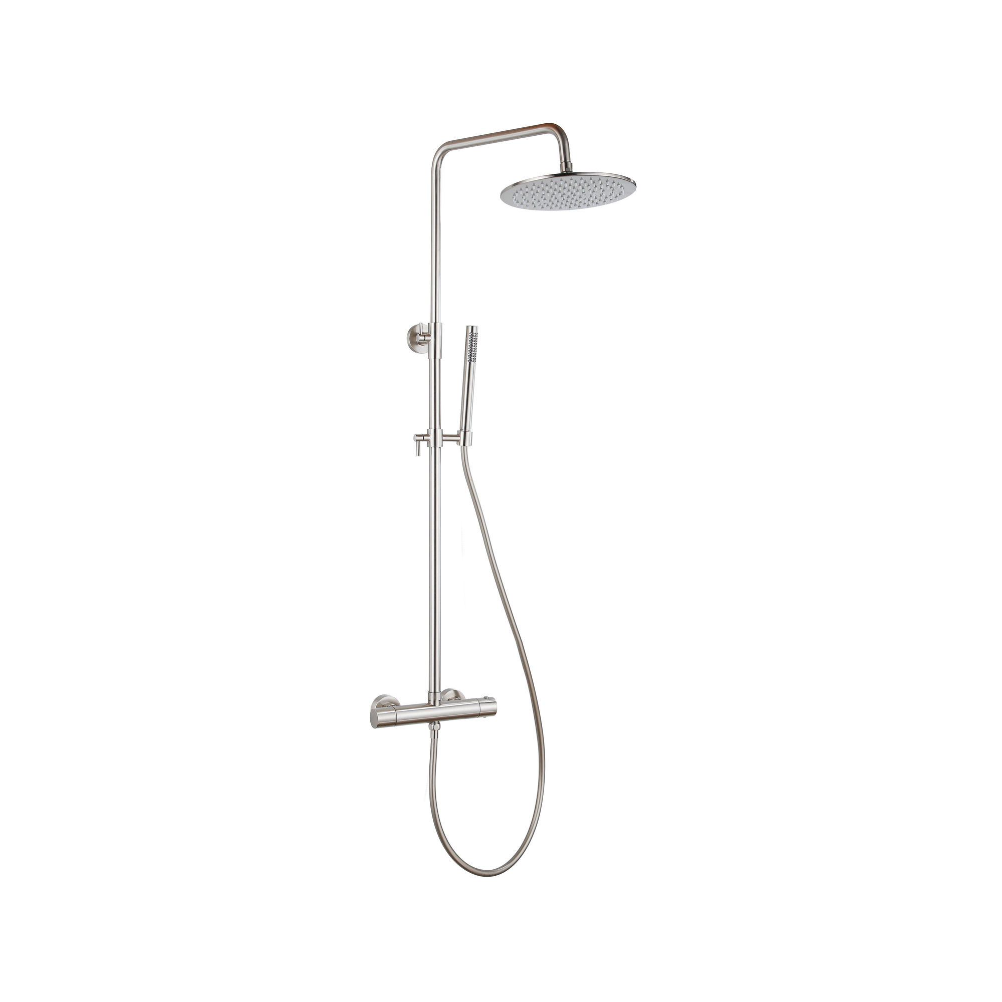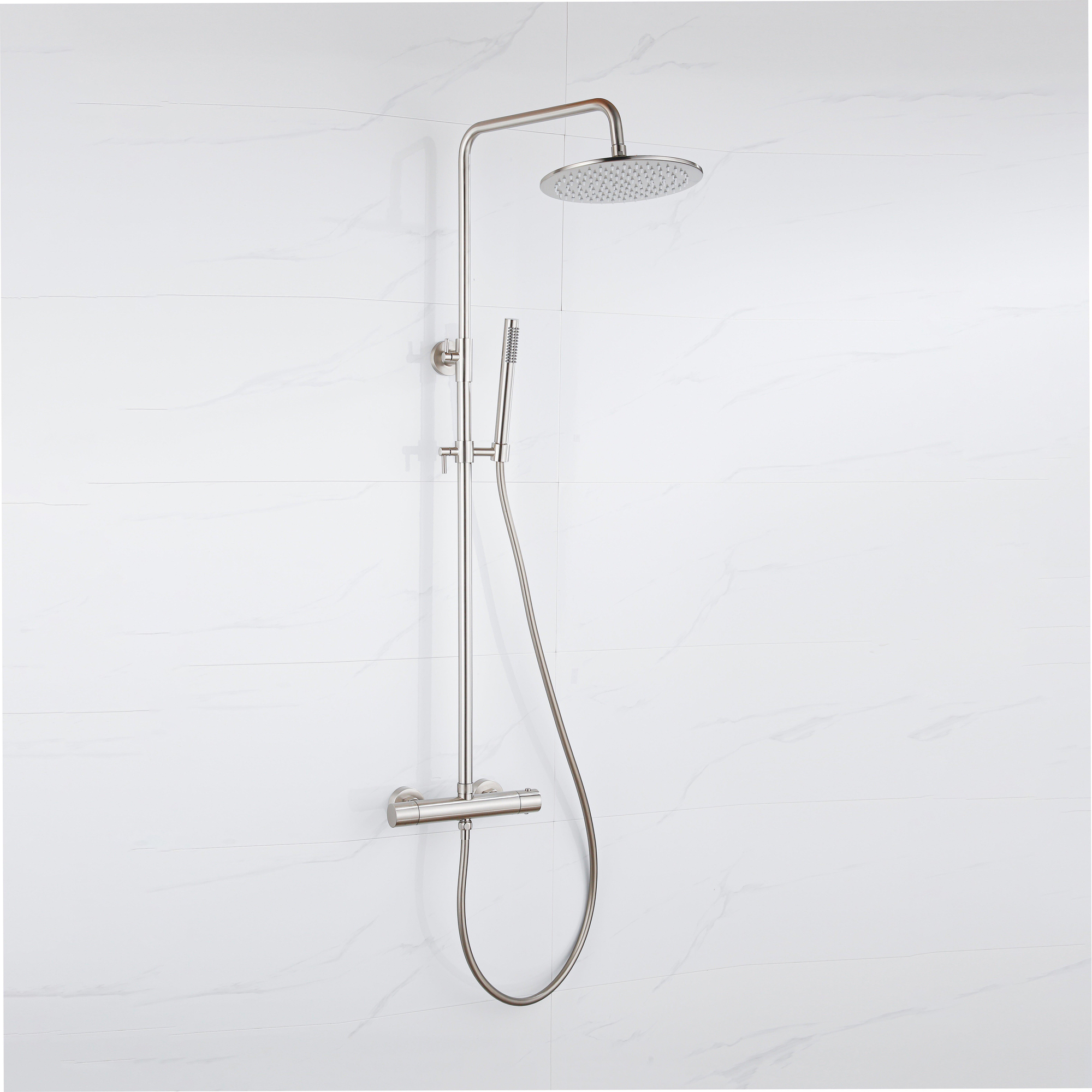 Fortifura Calvi Ensemble de douche de tête thermostatique - pomme de douche 25cm - flexible lisse - douchette stick - inox brossé PVD