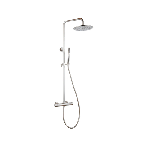 Fortifura Calvi Ensemble de douche de tête - thermostatique - pomme de douche 25cm - flexible lisse - douchette stick - Inox brossé PVD