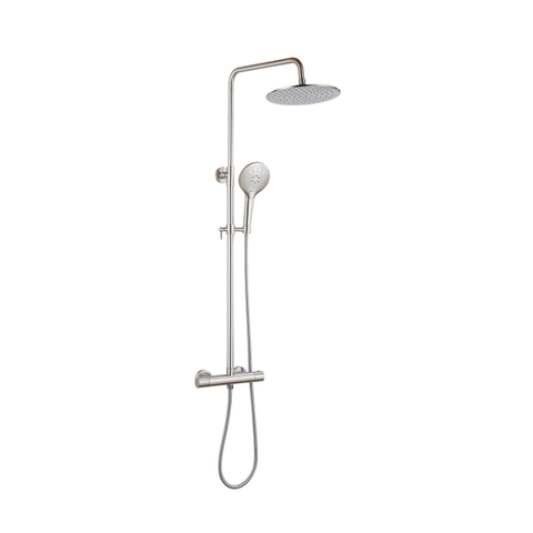 Fortifura Calvi Ensemble de douche de pluie - thermostatique - pomme de douche 30cm - flexible métallique - douchette ronde - Inox brossé PVD