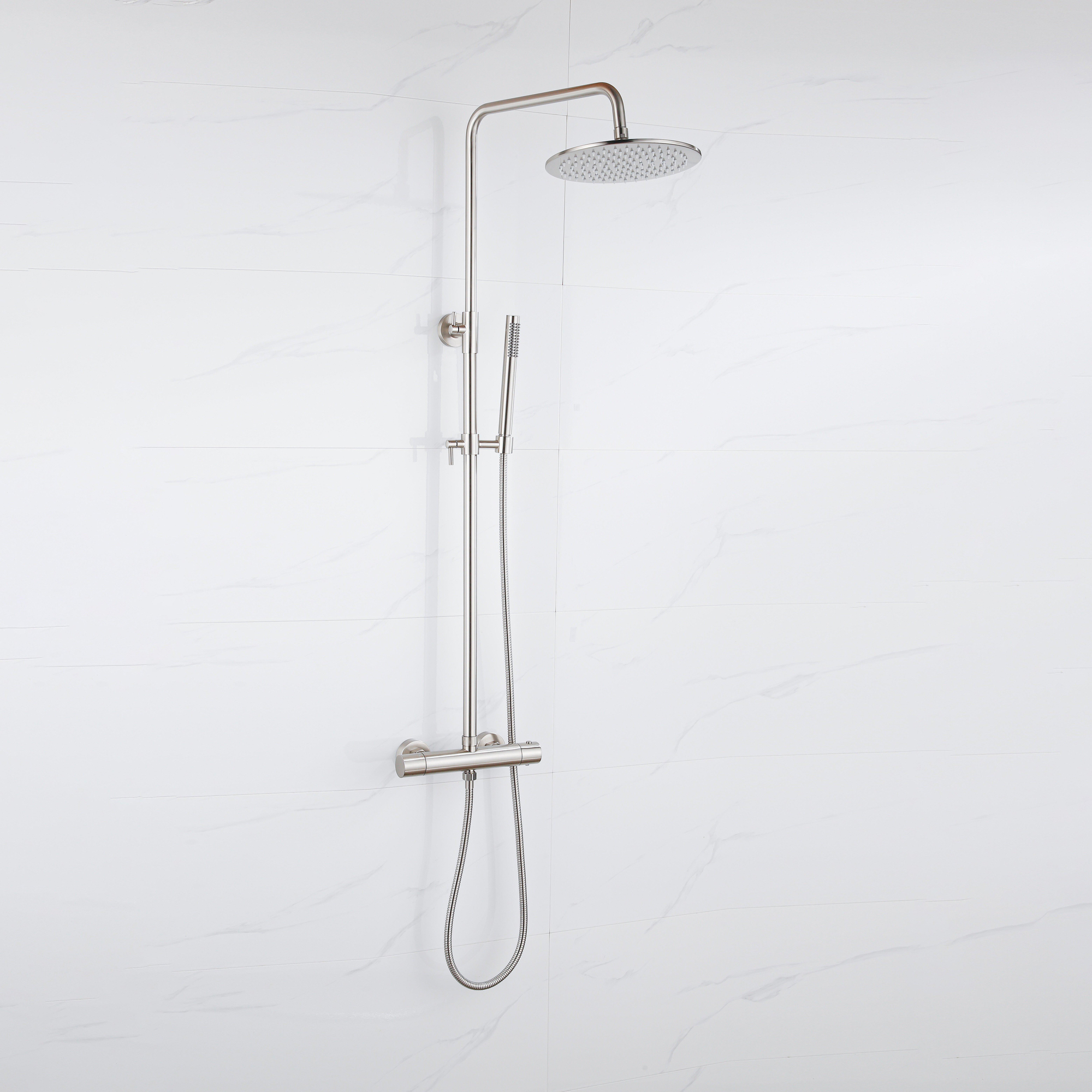 Fortifura Calvi Ensemble de douche de pluie thermostatique - douche de tête 30 cm - flexible métallique - douchette barre - inox brossé PVD