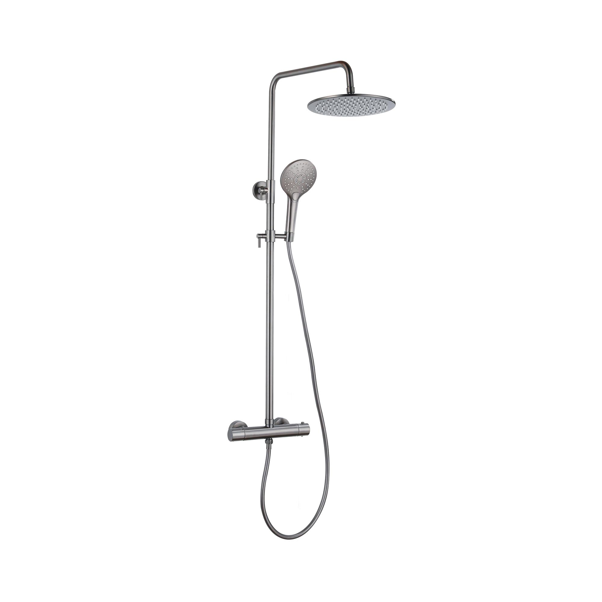 Fortifura Calvi Ensemble de douche pluie - thermostatique - douche principale de 30 cm - flexible lisse - douchette ronde - Gunmetal PVD brossé