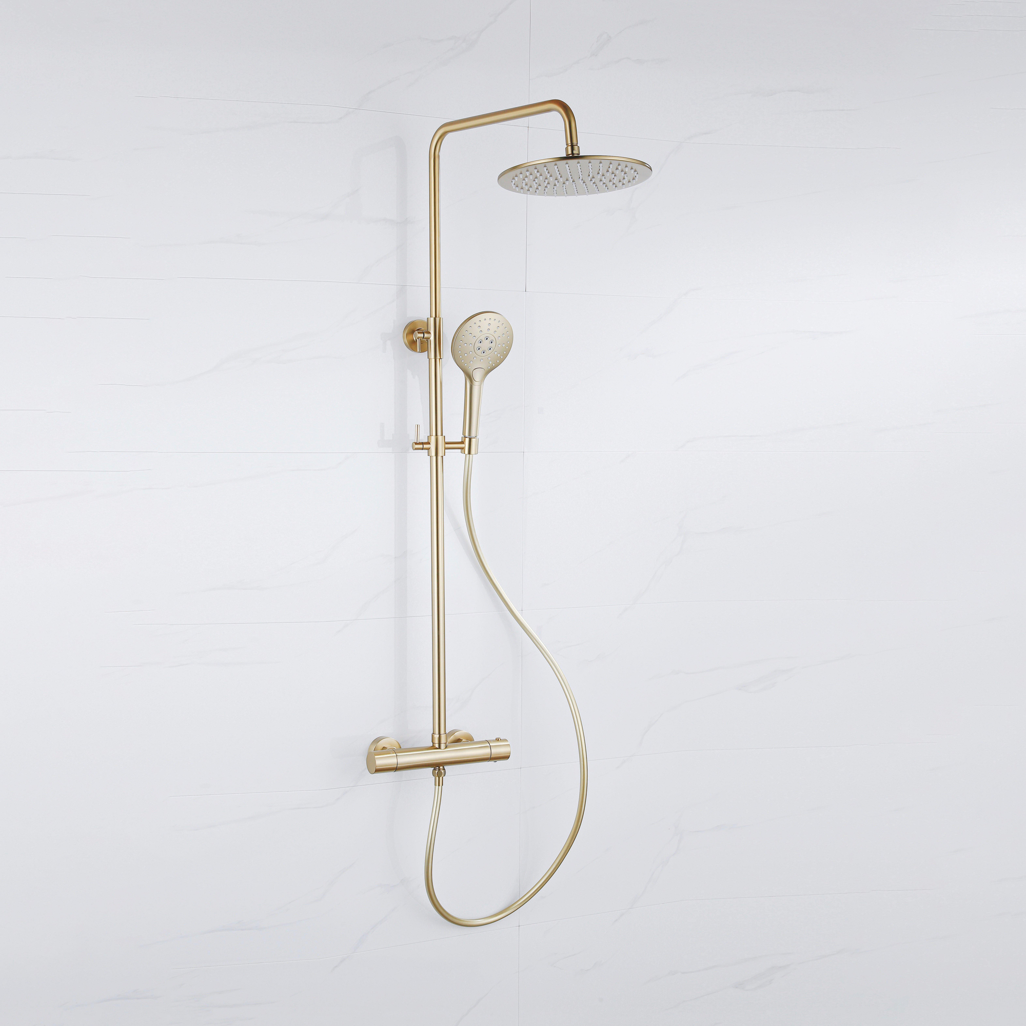 Fortifura Calvi Ensemble de douche de pluie thermostatique - douche de tête 30 cm - flexible lisse - douchette ronde - laiton brossé PVD