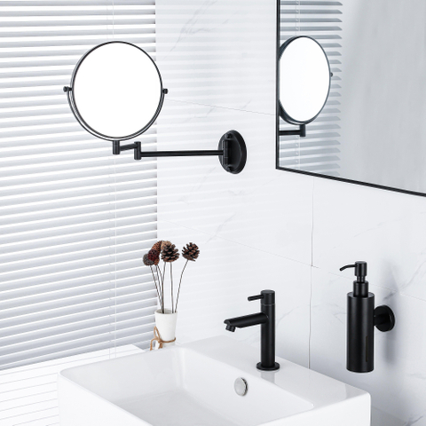 Fortifura Calvi - Miroir maquillage 20 cm, grossissement 1x et 3x, rond, finition noir mat.