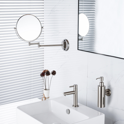 Fortifura Calvi - Miroir maquillage 20 cm, grossissement 1x et 3x, rond, finition PVD en inox brossé.