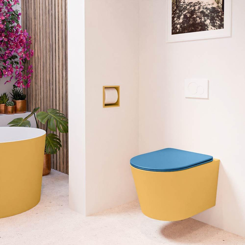 MONDIAZ LAVIE WC suspendu - 36x53cm - sans bride - Jeans (bleu) - softclose - quick-release - abattant WC - Ocher (jaune)
